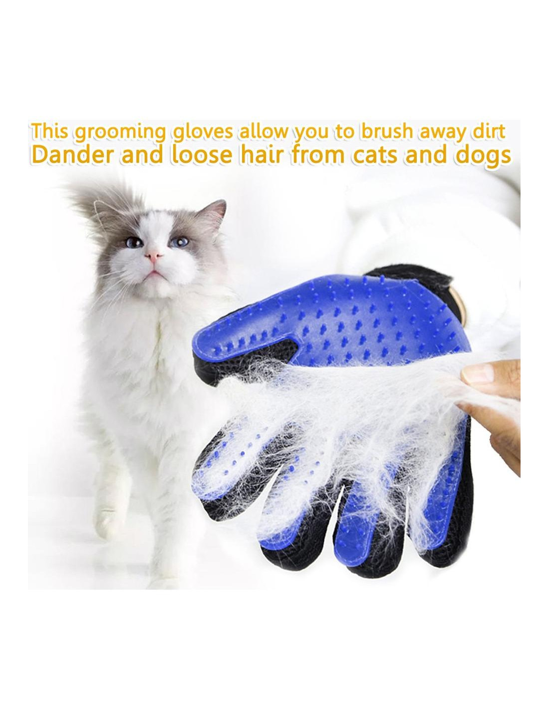 - REMOVEDOR DE PELO: El guante de aseo puede eliminar fácilmente y suavemente el pelo suelto de las mascotas y los enredos, por lo que no hay pelo volando. El pelo que se desprende se adhiere al guante, lo que facilita pelar y tirar el pelo.