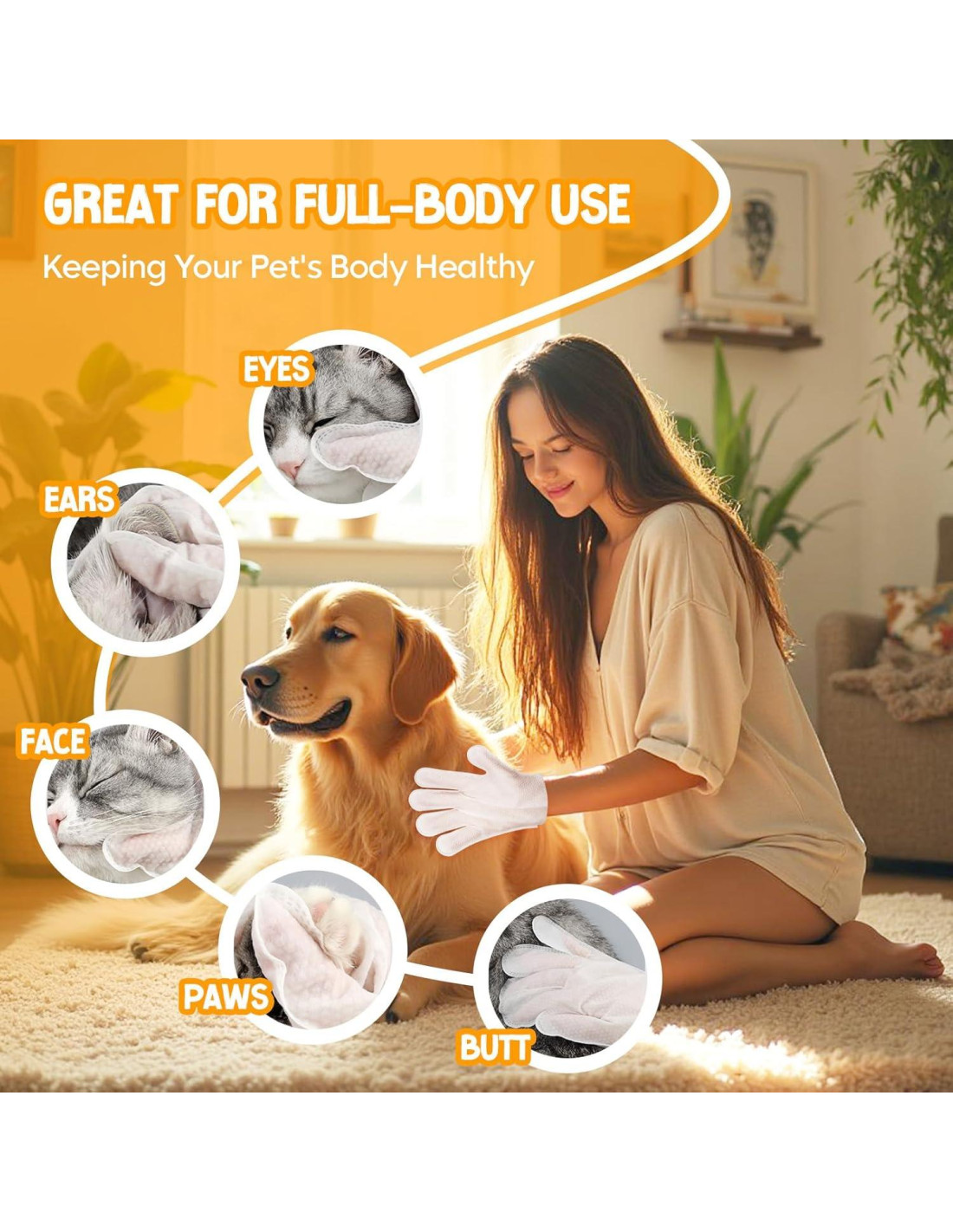- Toallitas para guantes sin enjuague - Los guantes para lavar mascotas están diseñados para el cuidado diario o días de trabajo ocupados, solo necesitas usarlos para limpiar, no se requiere agua ni enjuague. Las toallitas son ideales para actividades al aire libre en verano, como viajar, pasear y acampar, pero también para mantener a tus perros y gatos limpios y prevenir enfermedades durante los meses de invierno.