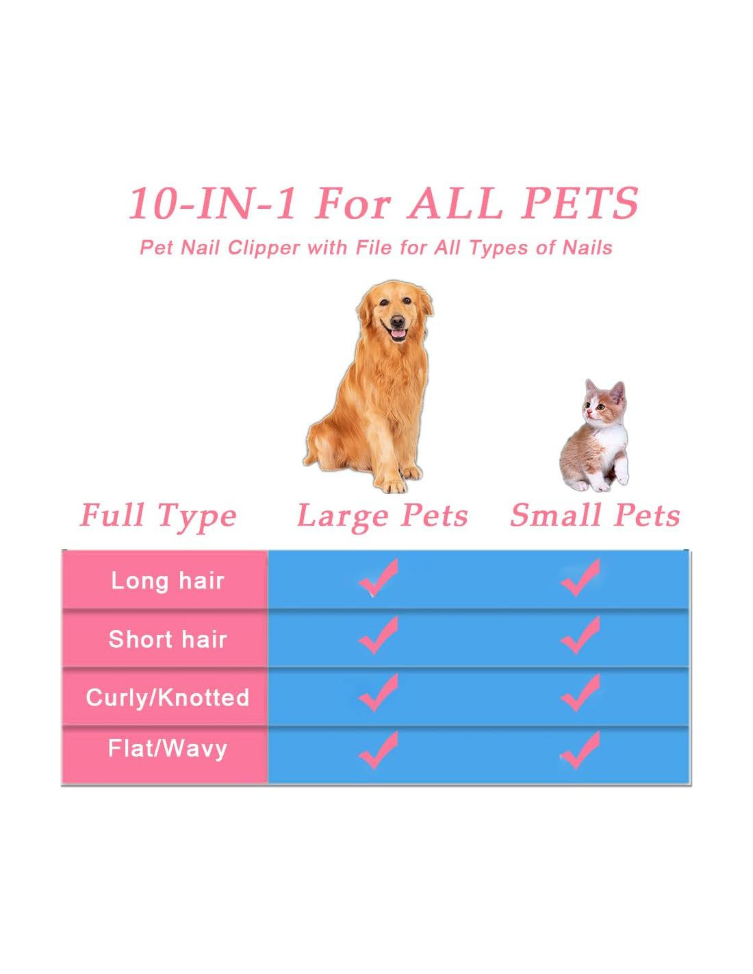 - Uñas Saludables para Mascotas: Los cortauñas para perros con lima pueden recortar fácilmente las uñas gruesas de mascotas grandes, medianas y pequeñas para evitar que se astillen. Después de recortar, usa la lima incluida para pulir las uñas de los dedos de tu perro para que queden redondeadas y menos afiladas. Es el producto recomendado preferido por muchos veterinarios, peluqueros profesionales de mascotas, entrenadores de animales y miles de clientes satisfechos.