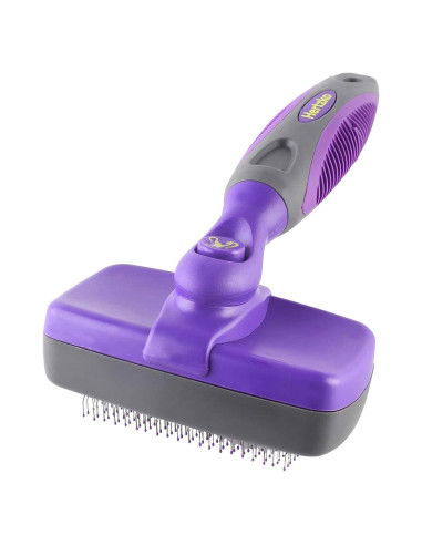 - Limpieza Sin Esfuerzo: Limpie fácilmente el cepillo con un simple clic de botón que retrae las cerdas, facilitando la eliminación del pelo recogido después de cada sesión de aseo