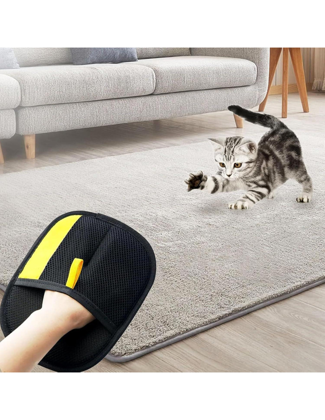 - Versátil: Este guante para el cuidado de mascotas no solo es adecuado para limpiar mascotas, sino también para muebles, alfombras, asientos de coche y sofás. Es una herramienta imprescindible para las necesidades de remoción de pelo.