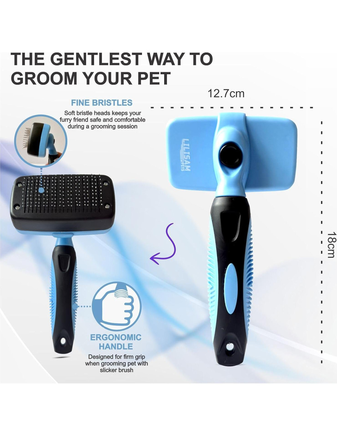 - [Eficiencia de Aseo Superior] : El kit de cepillo de aseo premium para perros y gatos de LILISAM asegura una experiencia de aseo sin complicaciones con su cepillo autolimpiante y peine, diseñado para un control óptimo de la muda y eliminación de pelo de mascotas.
