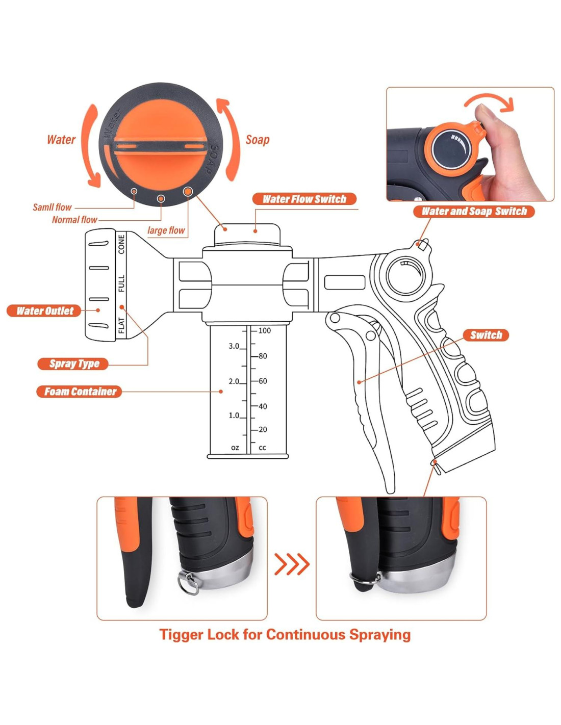- LAVADORA DE PERROS MEJORADA: A través de un refinamiento continuo, nuestra boquilla de manguera de alta calidad mantiene una presión de agua estable mientras agrega un interruptor de flujo de agua ajustable y un interruptor de control de agua de un botón. El volumen de agua se puede ajustar rápidamente según diferentes condiciones de uso, ¡eleva tu experiencia de lavado con las características mejoradas de nuestra pistola de agua espumosa!