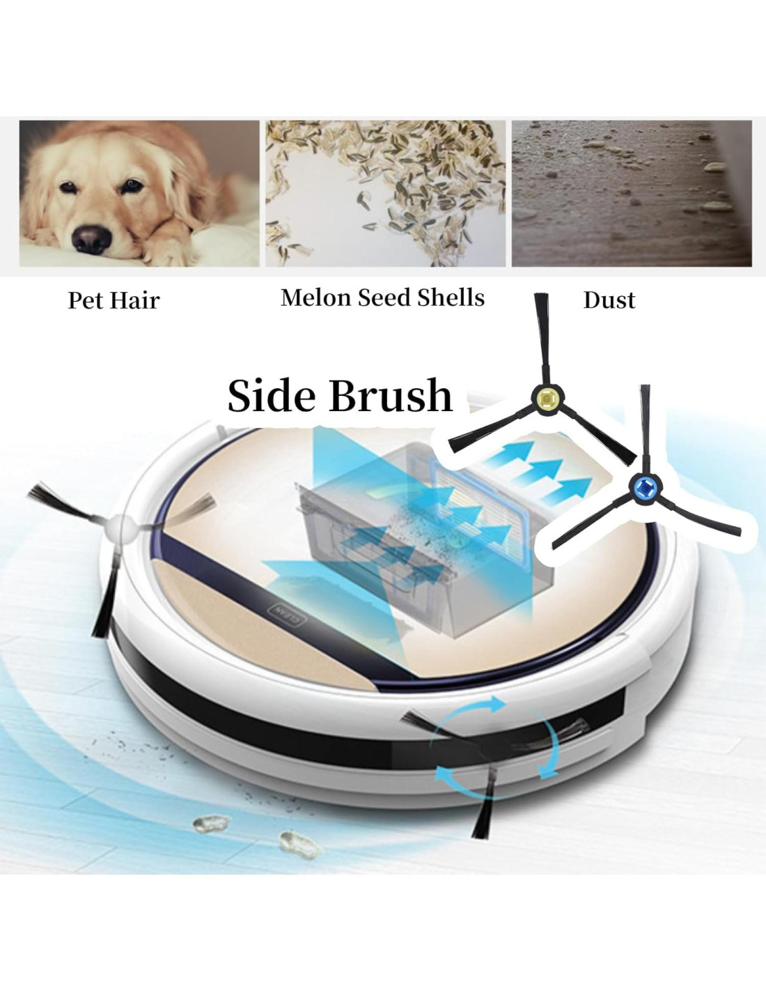 - Suave: Las cerdas del cepillo lateral son suaves, y el polvo es fácil de llevar al puerto de succión.