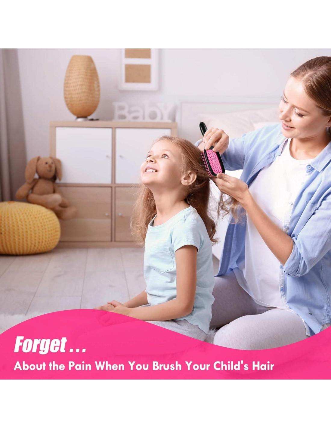 - Desenredo Sin Esfuerzo - Nuestro juego de cepillos para cabello con diseño hueco se desliza sin esfuerzo a través de tu cabello, abordando efectivamente incluso los enredos más difíciles. Las cerdas innovadoras aseguran que cada hebra se desenrede suavemente sin tirar ni romper, haciendo que tu experiencia de cepillado sea suave y sin dolor. Ya sea que tu cabello sea grueso, delgado, rizado o lacio, este juego de cepillos está diseñado para funcionar de manera efectiva, brindando a niñas, niños y bebés la confianza de un cabello sin enredos.