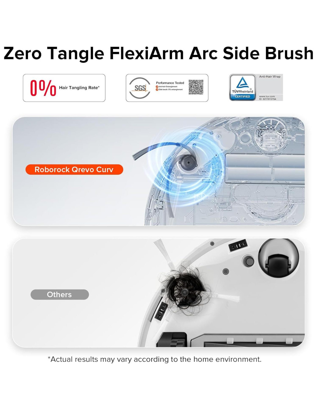 - Cepillo lateral FlexiArm Arc sin enredos: El exclusivo cepillo asimétrico en forma de arco aprovecha la fuerza centrífuga para evitar enredos de cabello, guiándolo sin esfuerzo hacia los extremos de las cerdas. Certificado por SGS y TUV, este diseño asegura una limpieza eficiente y sin enredos.