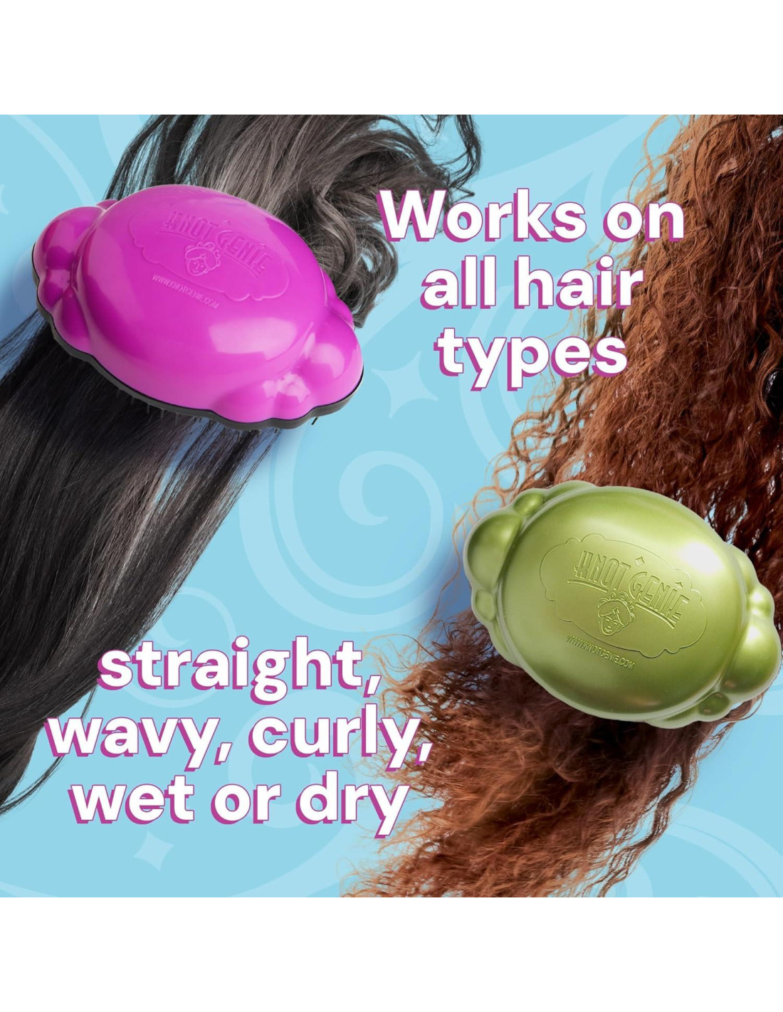 - ADAPTABLE: Con Knot Genie, puedes trabajar fácilmente con cabello rizado, ondulado, liso o incluso sintético Y puedes usar nuestro cepillo de cabello tanto en húmedo como en seco.