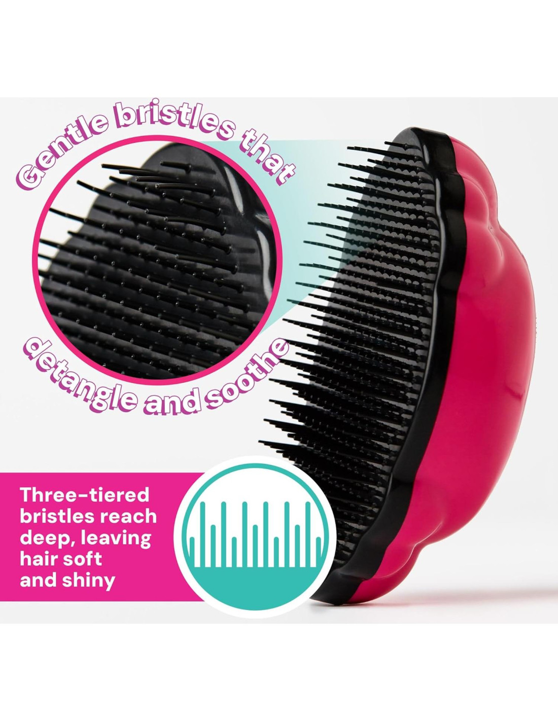 - Sin Dolor: ¡Experimenta la alegría de cepillarte el cabello sin dolor con nuestro diseño innovador! Nuestro cepillo cuenta con una mezcla única de longitudes de cerdas que desenredan delicadamente y rápidamente incluso los nudos más difíciles, asegurando la comodidad de tu hijo cada vez que se cepilla.