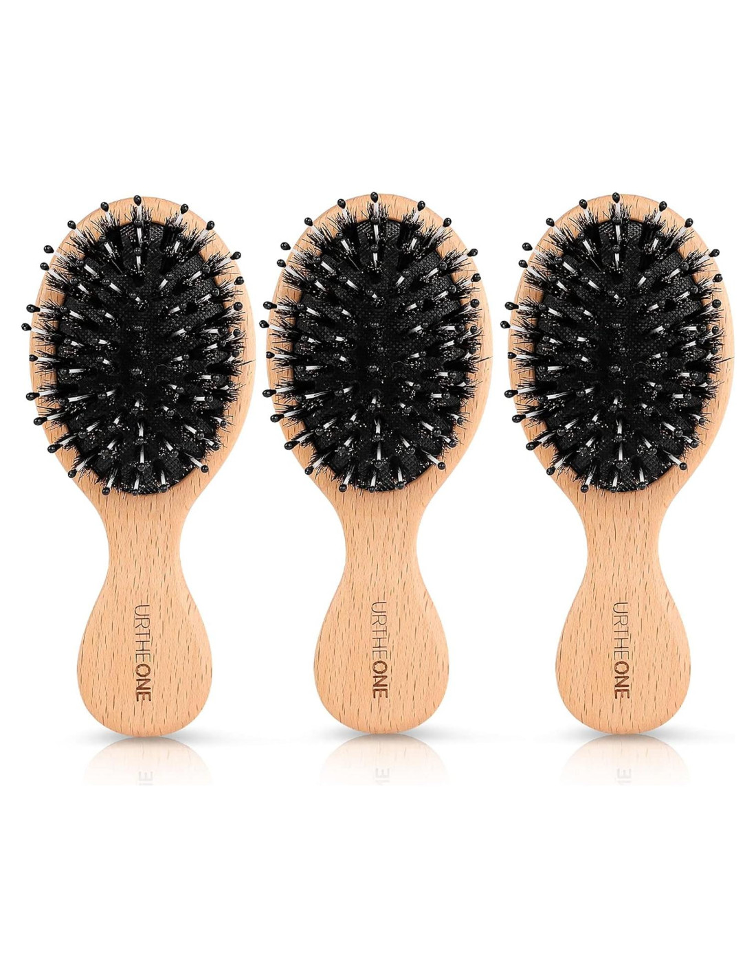 - Mini cepillo de pelo: Hecho de haya natural bien pulida con 70% de cerdas de jabalí y 30% de pines de nylon, penetra fácilmente a través del cabello normal y grueso, su uso diario ayuda a redistribuir el aceite desde el cuero cabelludo hasta las puntas del cabello. Las cerdas son una combinación perfecta de cabello de jabalí y plástico, brindándote todos los beneficios de las cerdas.