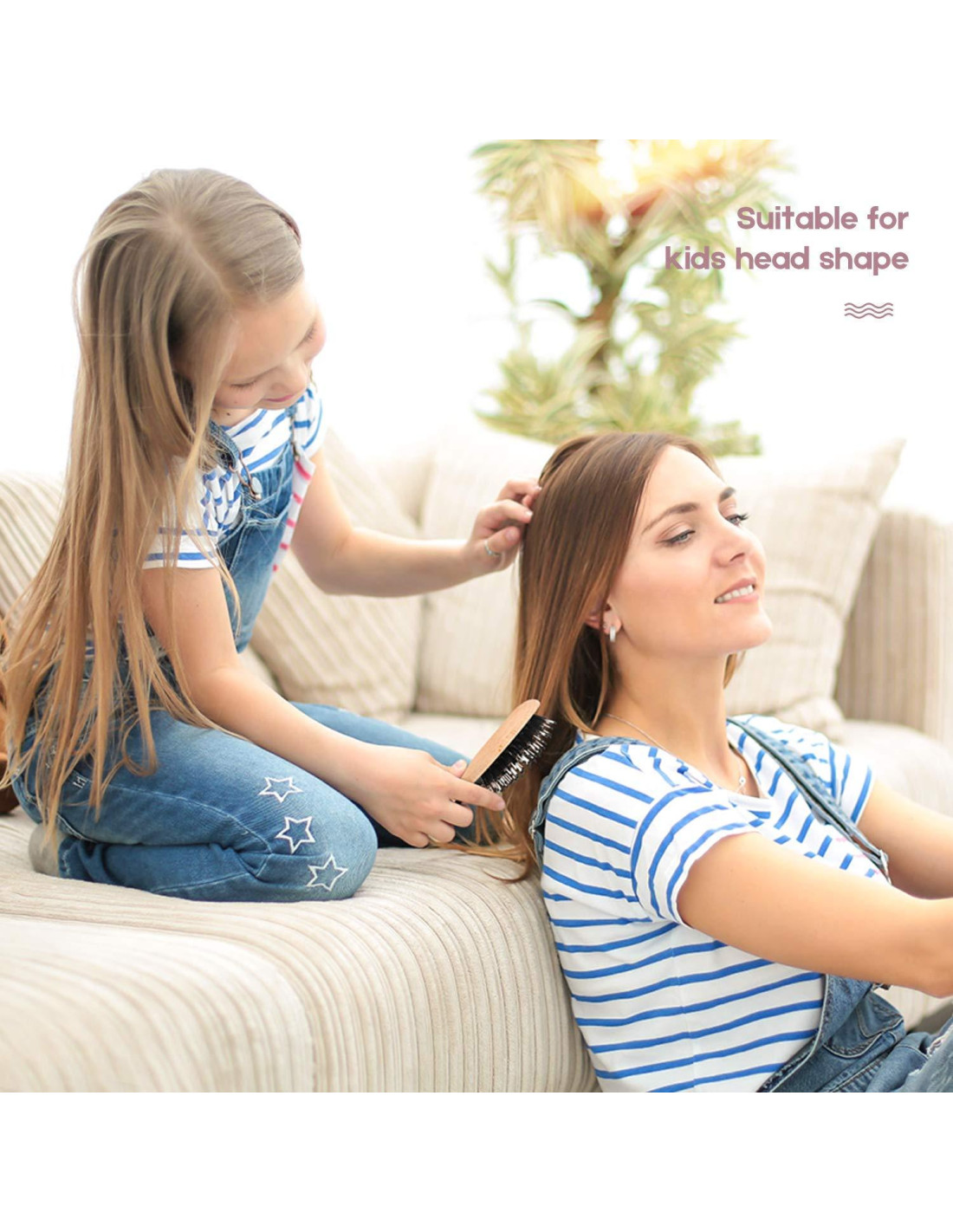 - Pequeño cepillo de cerdas de jabalí: Estilo único diseñado para niños y viajes, disfruta libremente del proceso de peinar el cabello, sin tirar ni llorar. El mango de paleta de madera se adapta cómodamente a la mano, fácil de usar. Ponlo en tu bolsa de maquillaje y disfruta de los beneficios de un cepillo de cerdas de jabalí al viajar.