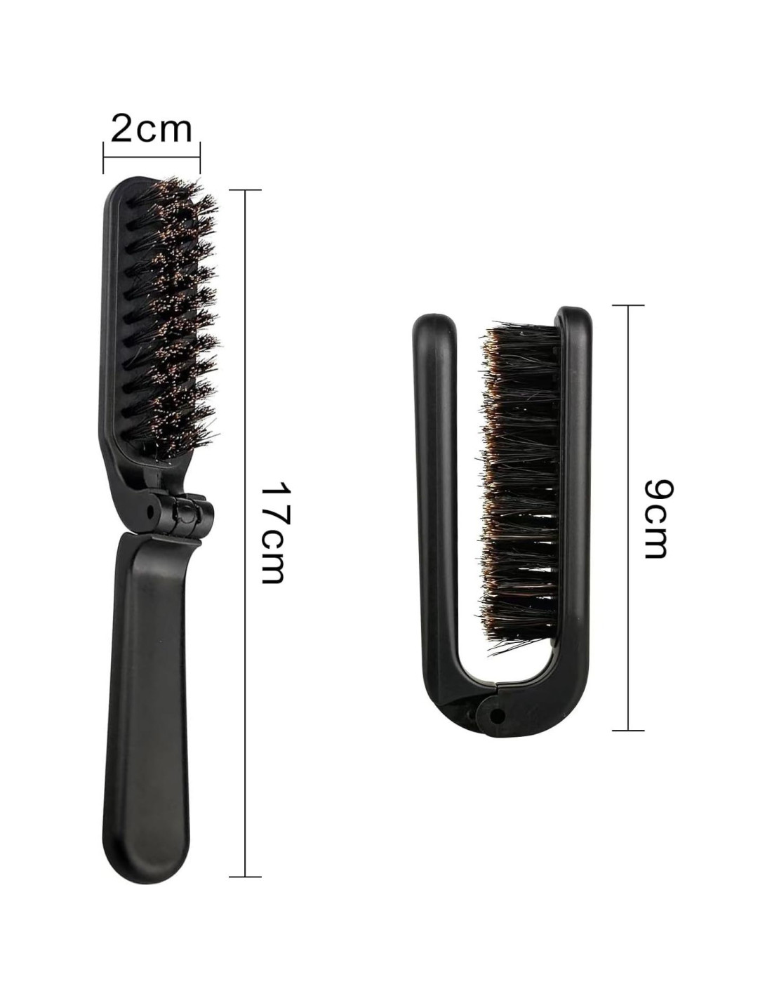 - Compacto y Portátil: Este cepillo plegable se colapsa en un tamaño compacto para facilitar el viaje y almacenamiento en bolsillos o bolsas.