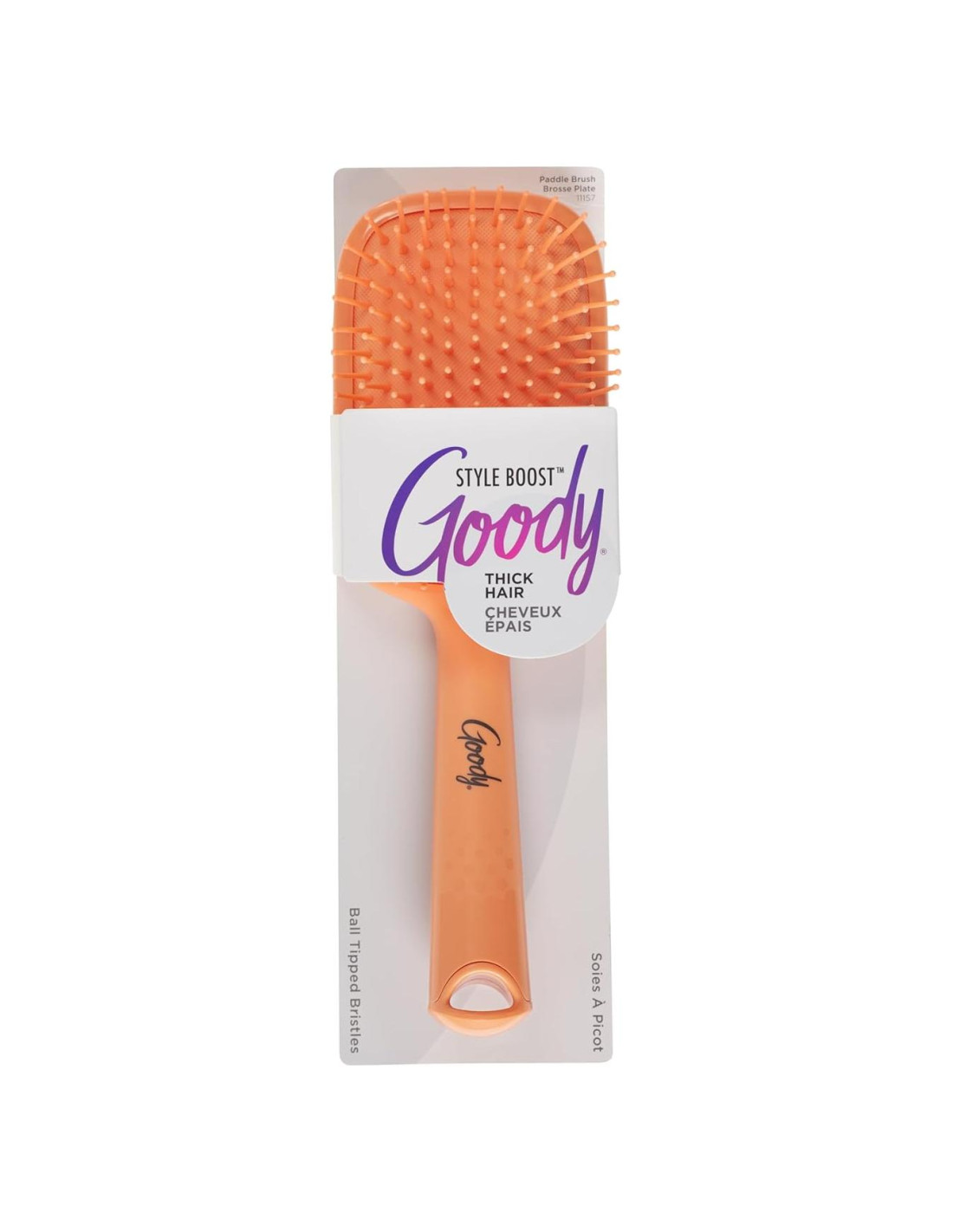 Sumérgete en una experiencia de cuidado del cabello sin complicaciones con el Cepillo Paddle Goody Style Boost - un cepillo para el cabello que es tanto práctico como elegante. Este cepillo desenredante cuenta con cerditas flexibles con puntas redondeadas que desenredan delicadamente los nudos y alisan el frizz, sin tirones ni enganches. Diseñado específicamente para cabello grueso, es tu herramienta ideal para deshacerte de los molestos nudos, dejando tu cabello liso y domado. Su diseño ancho y plano cubre más área de superficie, asegurando que elimines fácilmente los enredos y nudos rebeldes. Combate el frizz y la estática para un acabado pulido. El mango ligero ofrece un agarre cómodo y seguro y un control máximo, para que puedas trabajar sin esfuerzo a través de tus mechones gruesos. Se desliza a través de tu cabello incluso cuando lo secas con secador. Simplifica tu rutina diaria con este funcional cepillo paddle de color brillante, donde el estilo se encuentra con la practicidad. Trayendo estilo e innovación a tu juego de accesorios, Goody cree que la diversión y la función no son mutuamente excluyentes. Goody está contigo en cada momento de cada día con estampados brillantes, patrones y accesorios de moda para mejorar tu estilo y esenciales infalibles para estilos que perduran. Porque Goody sabe que un pequeño accesorio puede cambiarlo todo.