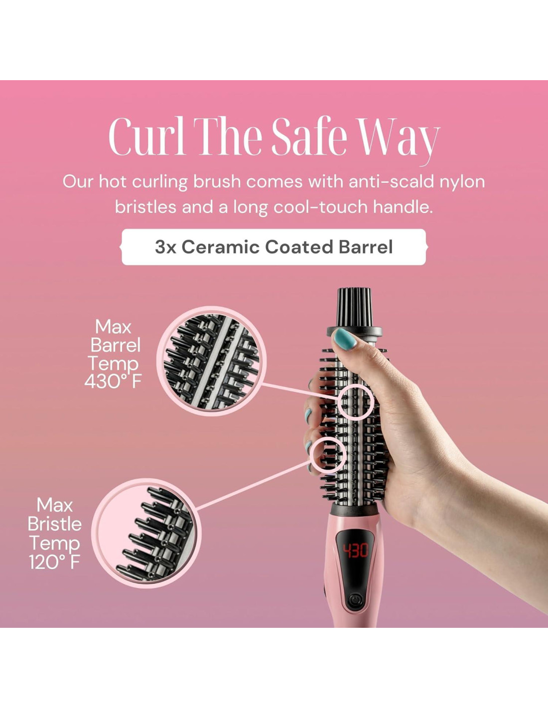 - RIZA DE MANERA SEGURA: A diferencia de otros rizadores de cabello que resultan en dedos quemados y cuero cabelludo escaldado, nuestro cepillo de rizar caliente viene con cerdas de nylon antiescaldado y un largo mango de toque frío. Esto significa que puedes aumentar la temperatura hasta 430F (221C) para resultados profesionales sin lidiar con quemaduras desagradables.