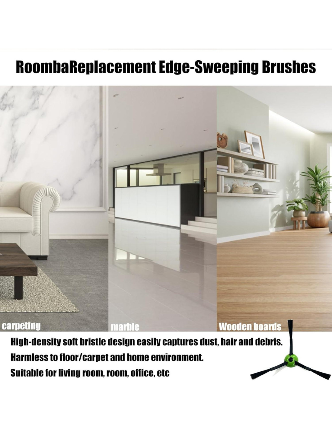 - mayor calidad Cepillos de Reemplazo de Barrido de Bordes de Roomba Llega a lo largo de los bordes para eliminar suciedad, polvo y escombros. Diseño de cerdas suaves de alta densidad que captura sin esfuerzo polvo, cabello, escombros. Sin daño a pisos/alfombra o al medio ambiente del hogar.