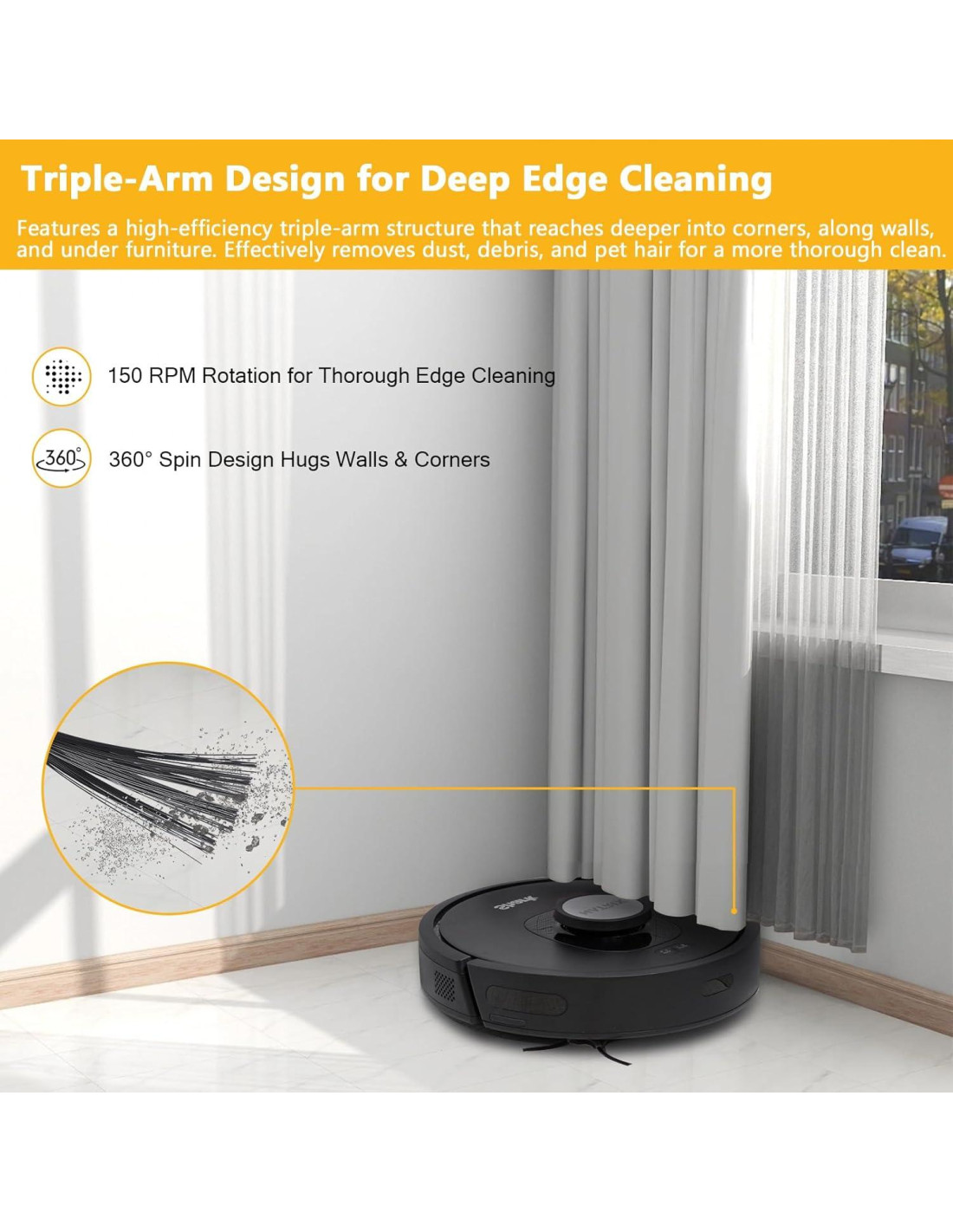 - Diseño de triple brazo para limpieza profunda en bordes. Presenta una estructura de triple brazo de alta eficiencia que llega más profundo en las esquinas, a lo largo de las paredes y debajo de los muebles. Elimina eficazmente el polvo, los desechos y el pelo de mascotas para una limpieza más completa.
