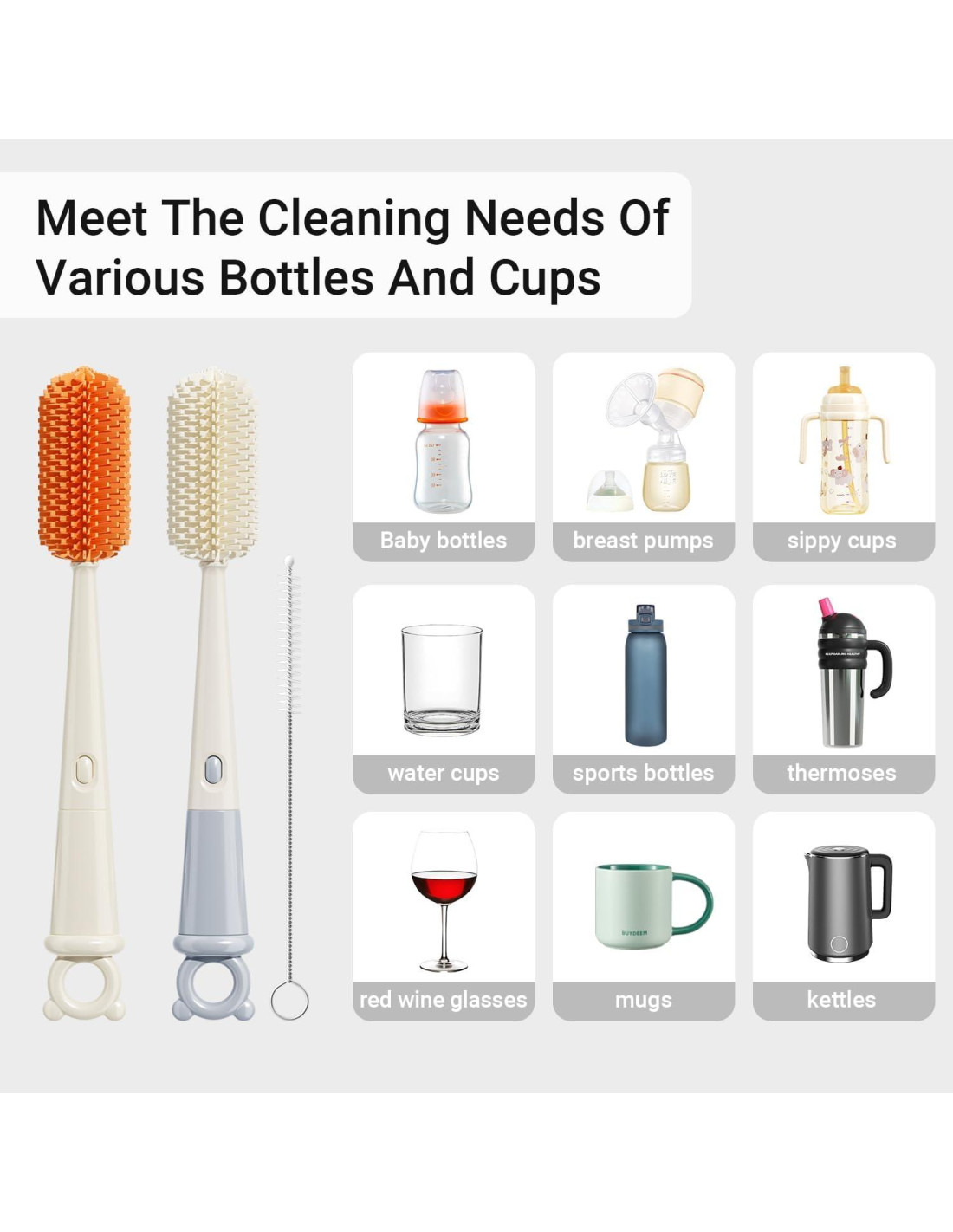 - Limpieza efectiva 4 en 1 - La cabeza del cepillo para botellas es adecuada para artículos grandes, mientras que la cabeza del cepillo de nylon es adecuada para el área estrecha del pezón. Limpia tapas de vasos y roscas sin necesidad de comprar extras. El cepillo para popotes limpia fácilmente los popotes.