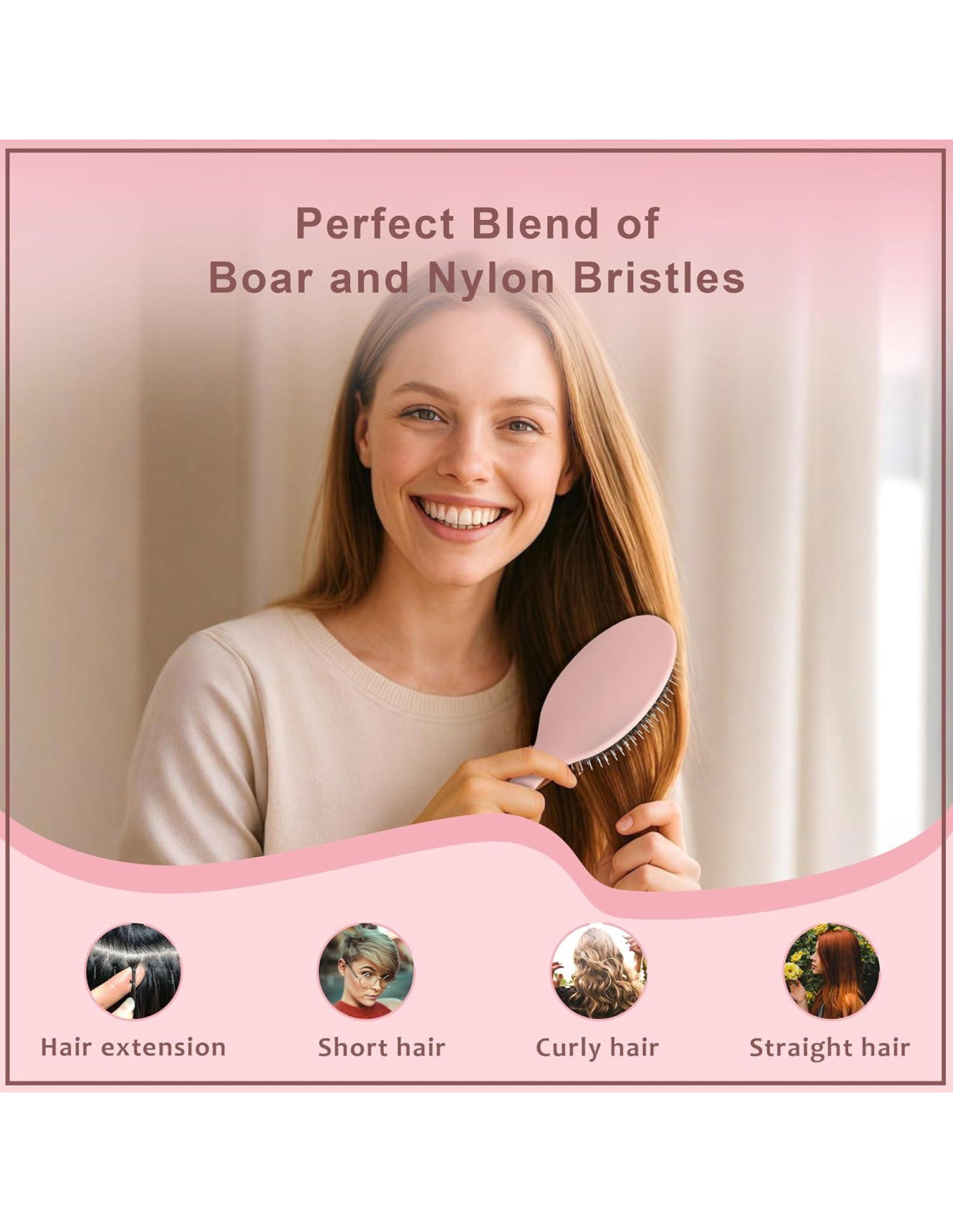 - Cerdas de Jabalí Natural para Brillo y Suavidad - Este cepillo de cerdas de jabalí distribuye uniformemente los aceites del cuero cabelludo para acondicionar las hebras, reducir el frizz y dejar el cabello pulido con brillo natural. Un verdadero cepillo suavizante para uso diario.