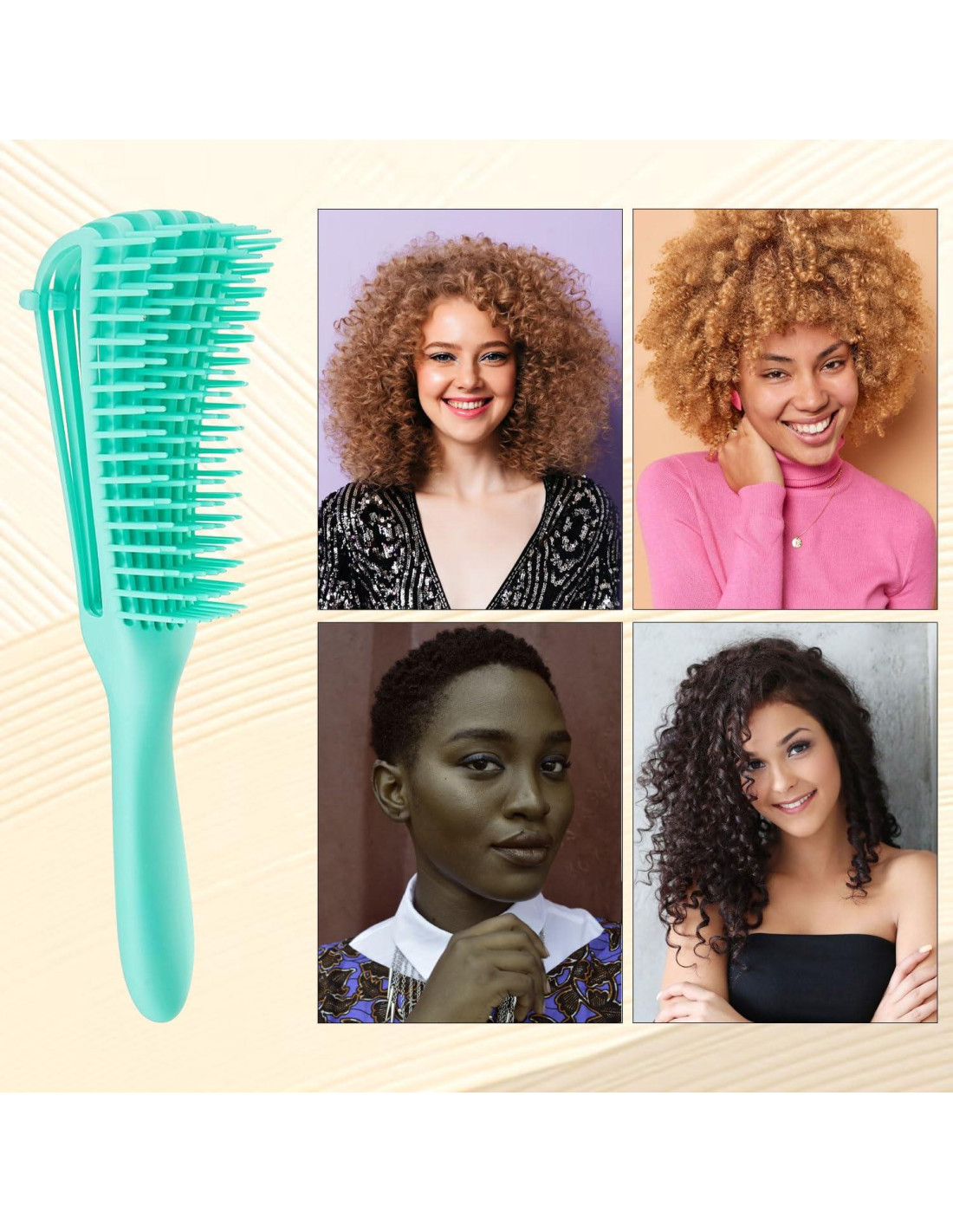 - ¡Presentamos nuestro innovador cepillo desenredante diseñado para cabello rizado! Este cepillo innovador cuenta con un diseño pensado moldeado a mano que desenreda tus rizos sin ninguna incomodidad ni tirones. Sus cerdas flexibles se ajustan a los contornos naturales de tu cabello, mientras que el mango acolchado ofrece un agarre cómodo. Este cepillo versátil destaca en desenredar tanto cabello mojado como seco y es igualmente fantástico para estilizar tus rizos.