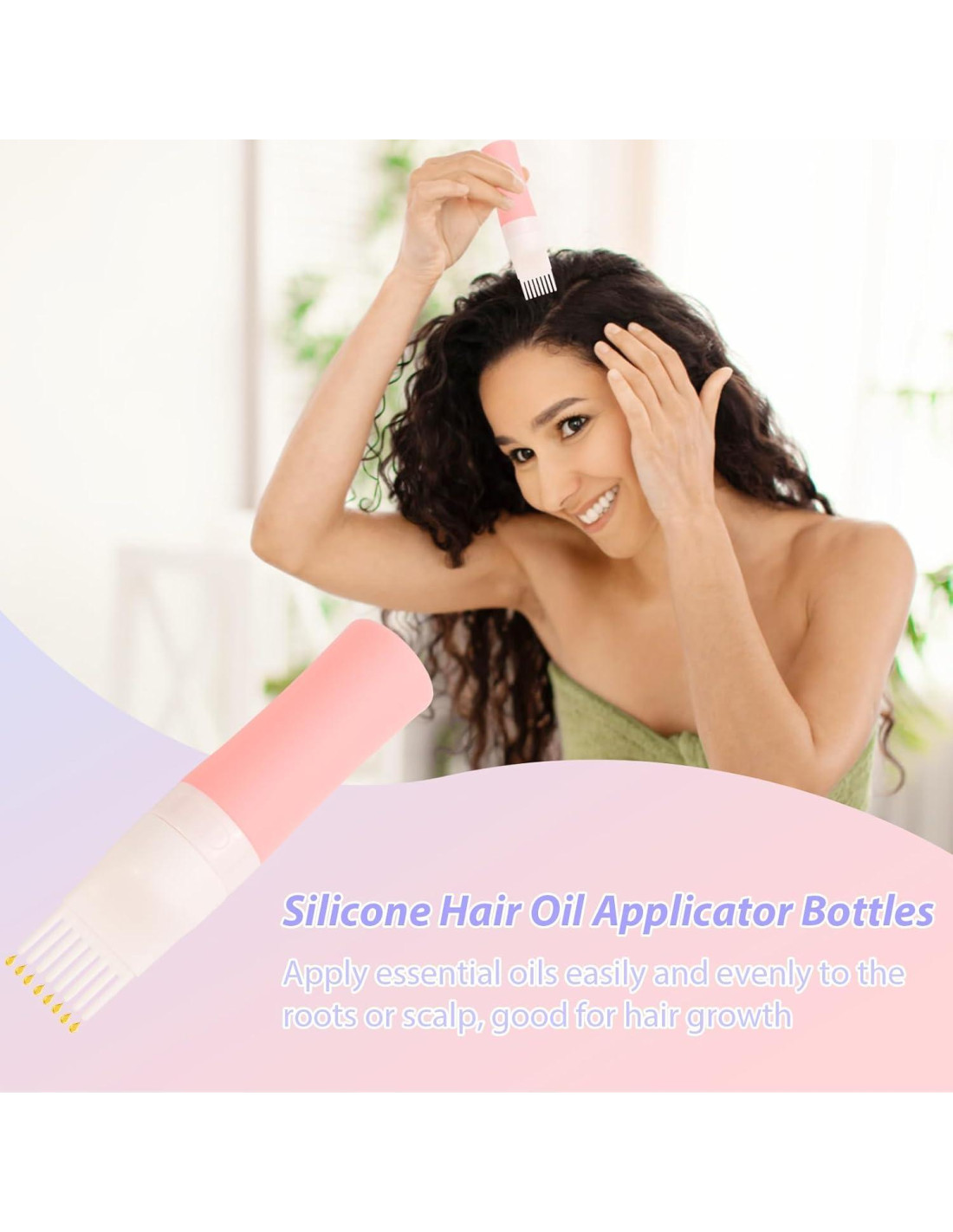 - MULTITUD DE APLICACIONES: Botella de aceite para cabello a prueba de fugas ideal para verter aceites esenciales o champú, color de cabello para uso. El masajeador de cuero cabelludo de silicona se puede usar para limpiar profundamente y masajear tu cabeza, o para cepillar tu cabello y jugar con tu mascota.