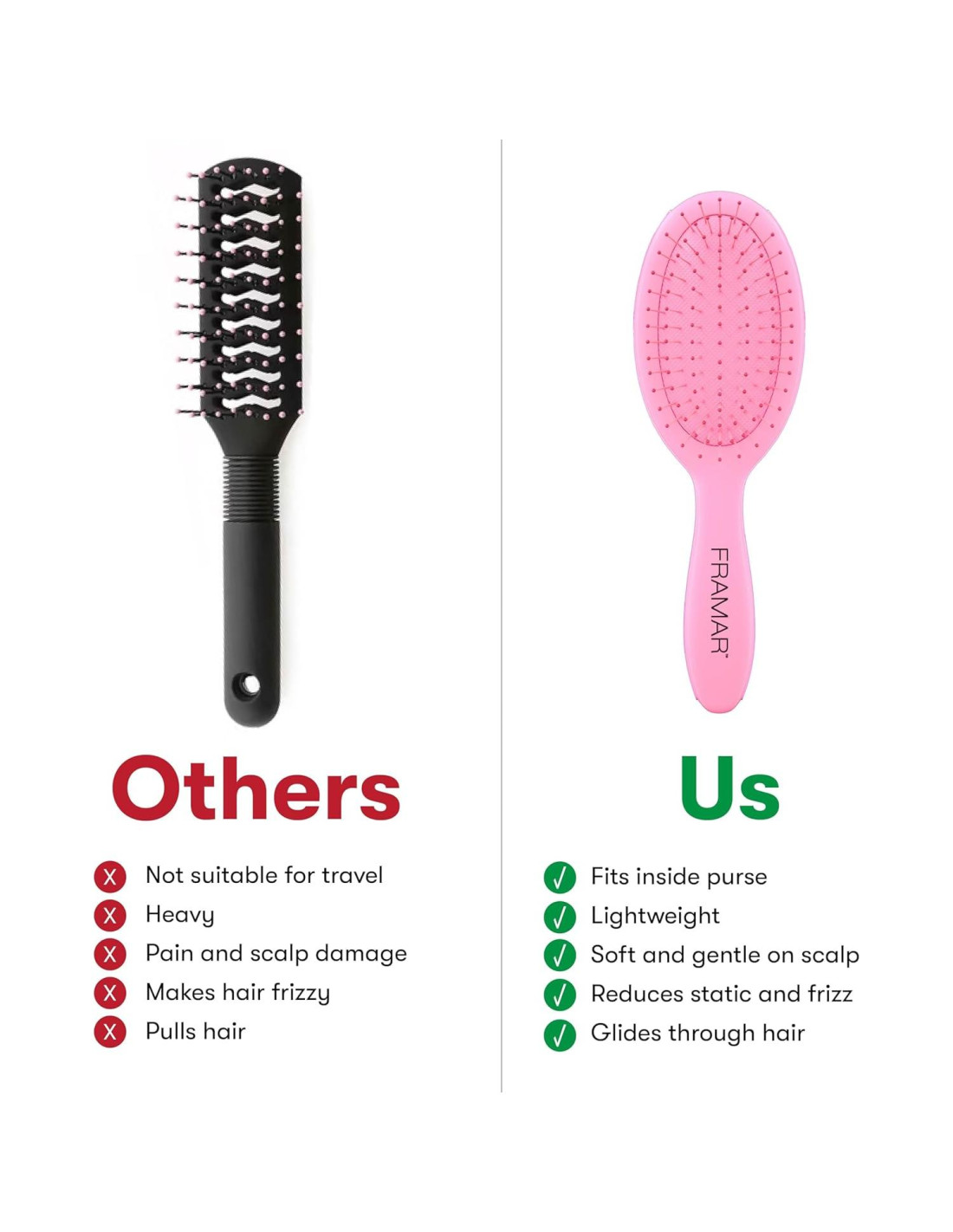- BONITO EN ROSA - Este mini cepillo para cabello viene en un acabado rosa mate de moda que es tan elegante como funcional, añadiendo un toque de estilo a tus esenciales de viaje o bolso.