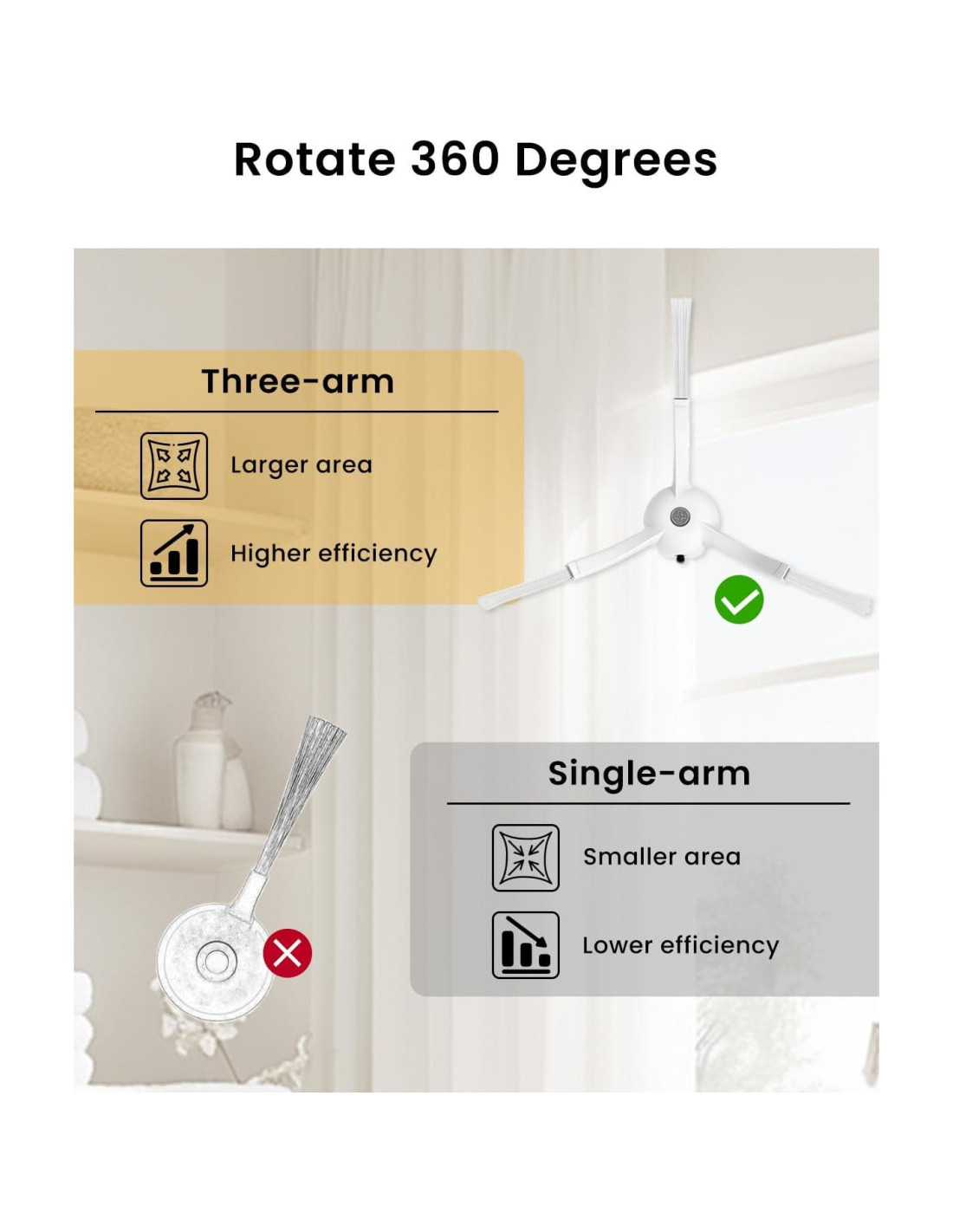 - Funcionalidad Poderosa: Los cepillos de aspiradora robot Rrochio son efectivos para capturar polvo, polen, caspa de mascotas y alérgenos, entre otras cosas. Especialmente para asmáticos, el cepillo lateral de repuesto Rrochio te proporciona una excelente calidad del aire.