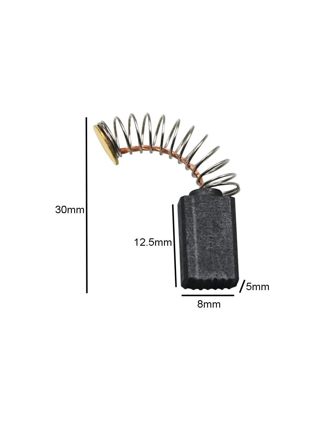 El paquete incluye: 10 Piezas Cepillos de Carbono - Hecho de carbono y metal de calidad, duradero. - Tamaño: 0.49*0.31*0.2 pulgadas (12.5*8*5 mm) - Fácil de usar, los cepillos de carbono desgastados son a menudo la causa de un mal funcionamiento del motor, los nuevos cepillos de resorte restauran el freno eléctrico del motor. - Adecuado para la mayoría de las herramientas eléctricas, taladro, taladro rotativo, taladro de percusión, sierra de calar, lijadora, martillo rotativo, destornillador eléctrico, sierra ingletadora, sierra de corte, sierra de corte, amoladora angular, recolector de polvo, motor de soplador, desmalezadora, etc. Aviso: 1. Debido a la razón de la luz y la pantalla, el color puede tener una ligera diferencia. Esto es inevitable, ¡por favor entienda! 2. Por favor, permita una ligera diferencia de dimensiones debido a diferentes mediciones manuales.