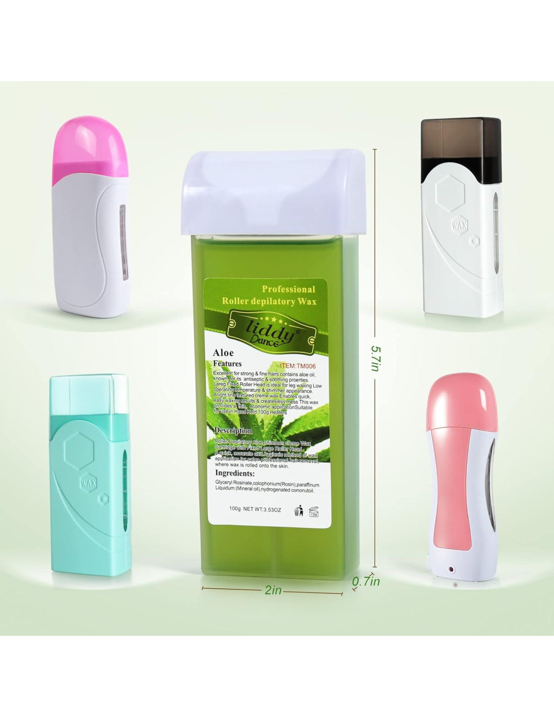 - [Larga duración] : Al depilar tu piel, la cera se adhiere a tu vello, elimina el vello desde la raíz, el rodillo de cera puede durar 4 semanas más que el afeitado. Después de la depilación, el aloe natural tiene un buen efecto hidratante y calma la piel, lo que puede reducir la sensibilidad, irritación y enrojecimiento, ayudando a asegurar el nivel ideal de comodidad para cada cliente al reducir el enrojecimiento y la irritación.