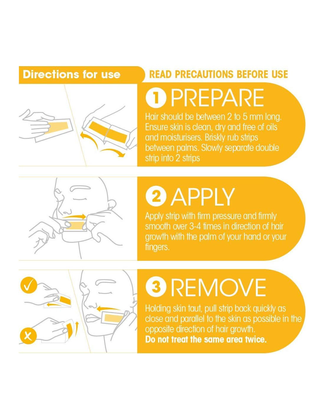 ¡Sin calor, sin desorden, sin complicaciones! Elimina el vello facial no deseado para una piel suave y libre de vello. Las cintas de cera facial natural de NAD'S son una forma rápida y fácil de eliminar el vello facial no deseado desde la raíz en las áreas del labio superior, mentón, mejilla y entrecejo. Nuestras cintas de cera cuentan con una tecnología de cinta Eco flex que se adapta a las sutiles curvas de la cara, especialmente en esos lugares difíciles como la línea de la mandíbula, el mentón y el labio superior. Hechas de ingredientes de origen natural, nuestras cintas de cera son adecuadas para todos los tipos de piel, son veganas y libres de alérgenos y fragancias. Con un uso regular, el crecimiento del vello se ralentiza progresivamente.