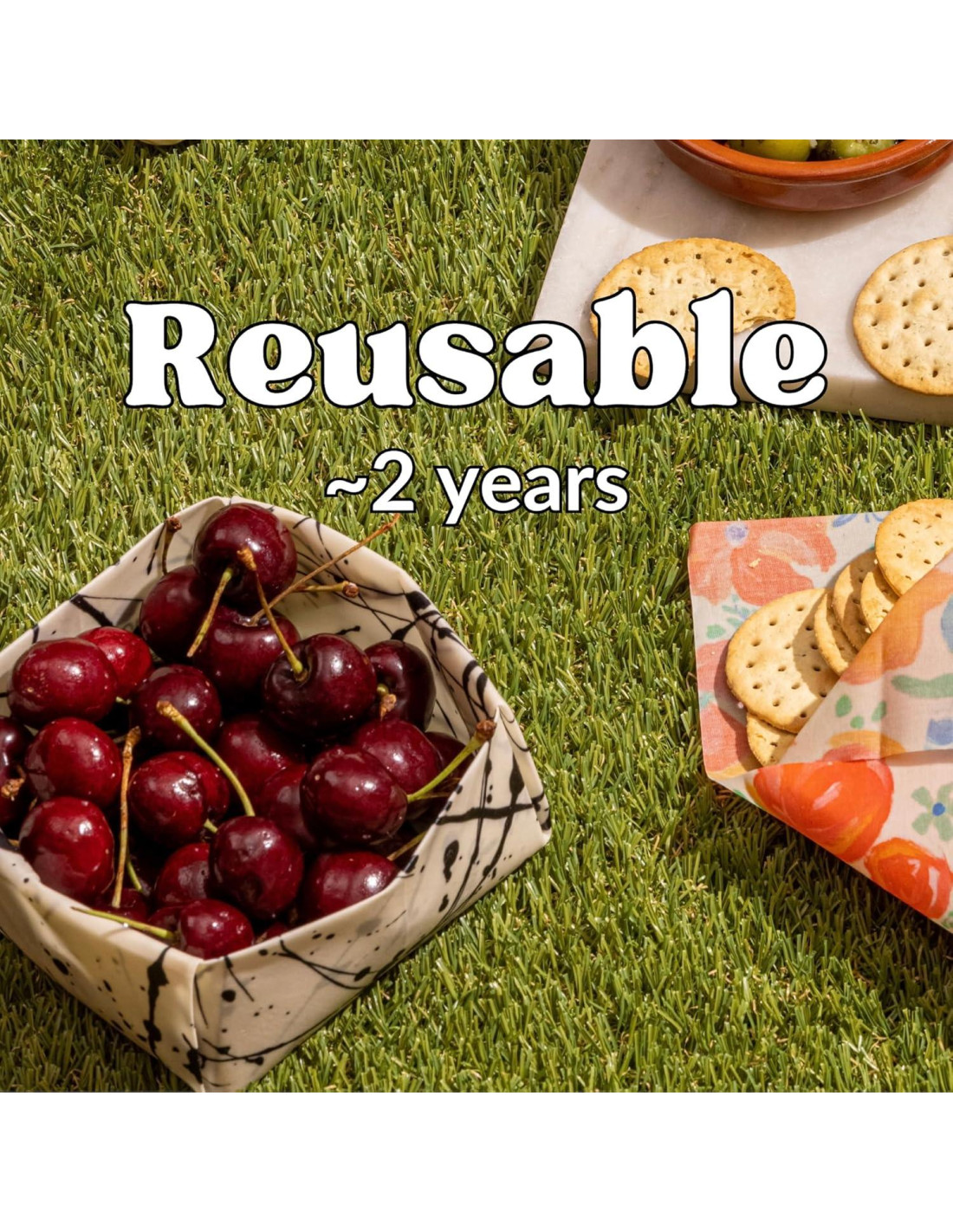- DISEÑOS PINTADOS A MANO - Cada envoltura Bee Kind presenta diseños originalmente pintados a mano por la madre de nuestro fundador. Dale vida a tu cocina y bolsa de almuerzo con estampados vibrantes y divertidos.