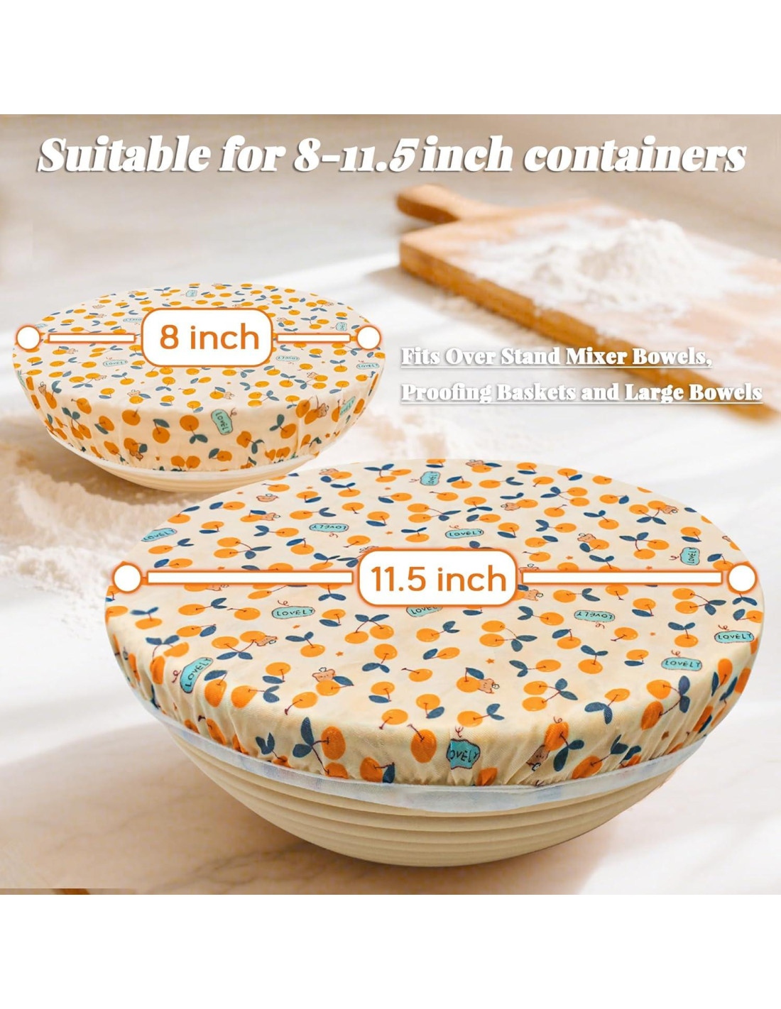 - 4. Diseño Elástico: Las cubiertas de tazón elásticas se estiran para adaptarse a varios tazones, cubriendo de manera segura tazones de mezcladora, cestas de fermentación de pan y almacenamiento de alimentos.