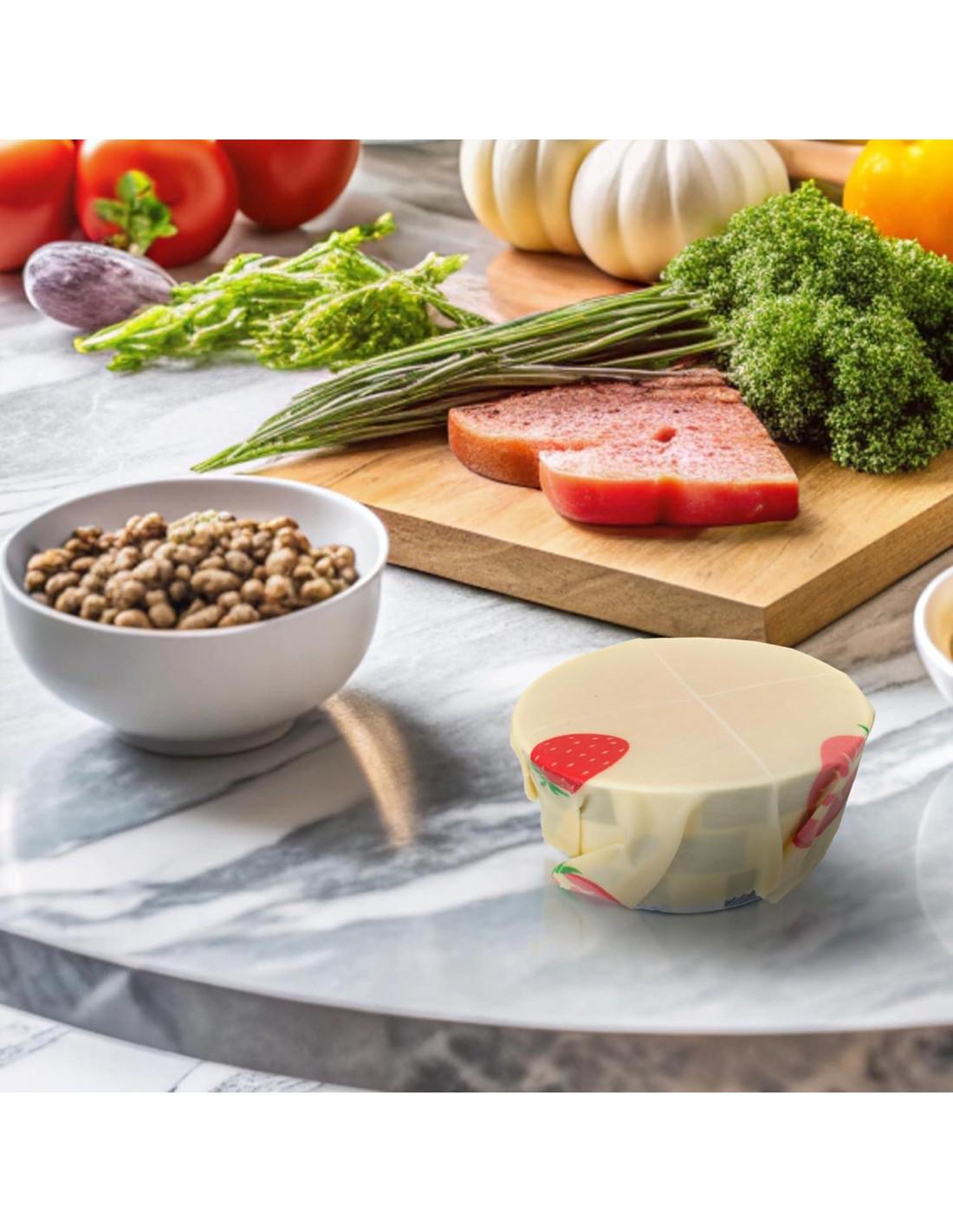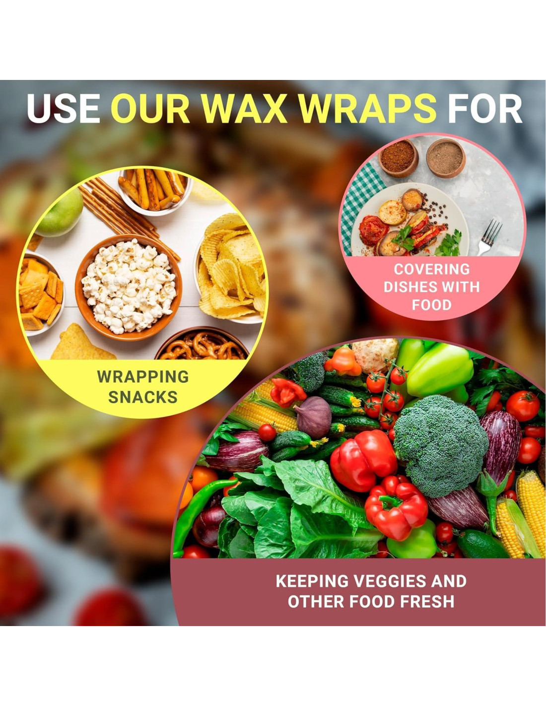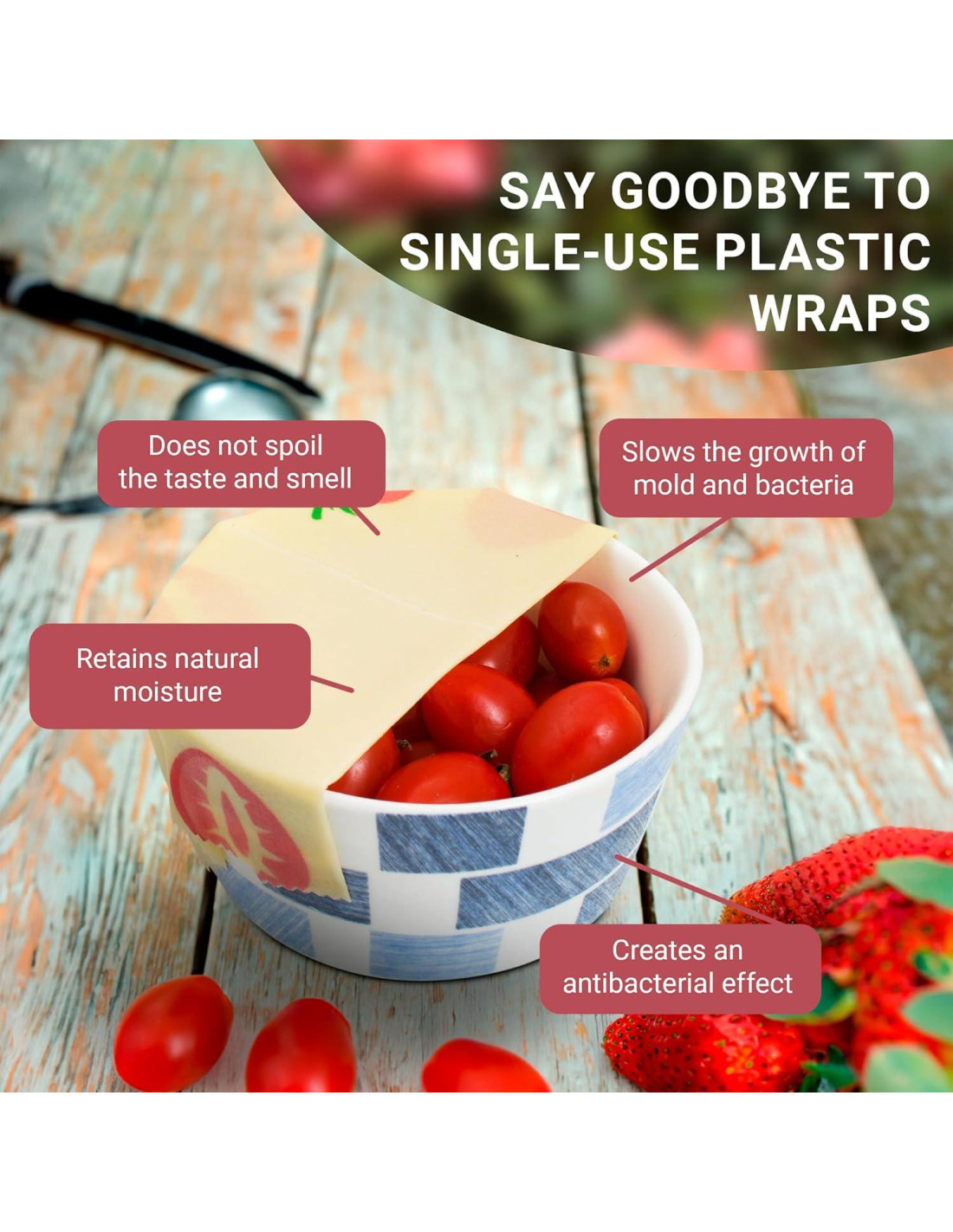 - Adopta un Estilo de Vida Sostenible. Estas envolturas de cera de soja con temática de frutas están diseñadas para cubrir alimentos y tazones. Di adiós a las envolturas de plástico de un solo uso y elige esta alternativa reutilizable y ecológica. Cada paquete contiene tres envolturas.
