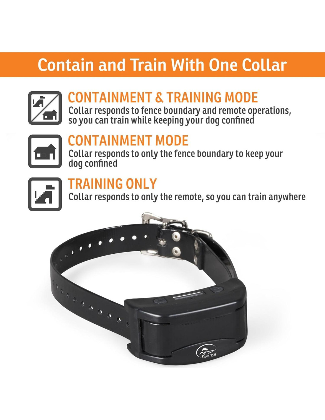 - SISTEMA MULTI-DOG: Con el Sistema SportDOG Brand Contain + Train, las cercas se convierten en cosa del pasado. Esta cerca para perros te permite contener un número ilimitado de perros con collares adicionales, y entrenar hasta tres perros con el control remoto incluido.