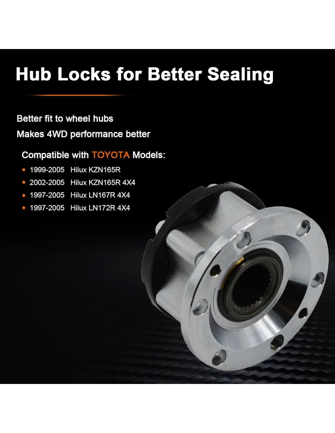 - Material Premium Construido con aleación de zinc de alta calidad, nuestro cierre de rueda de 2 piezas garantiza durabilidad y longevidad para sus modelos Toyota Hilux KZN165, LN167 y LN172 4x4/4WD de 1997 a 2005.