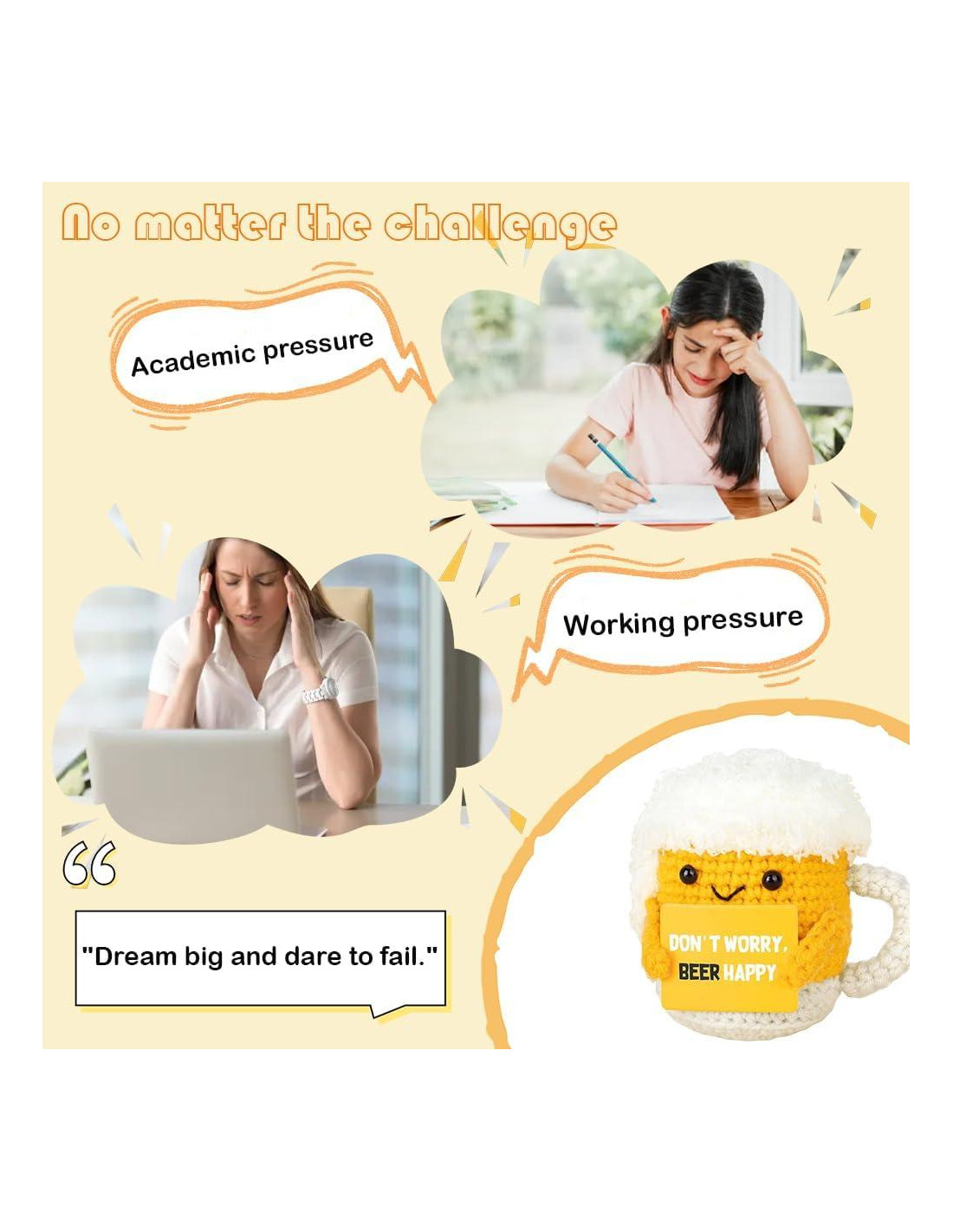 - [Apoyo Emocional Positivo] : Esta encantadora cerveza de crochet viene con una tarjeta de mensaje inspiracional para alegrar tu estado de ánimo con energía positiva y aliento. Te brinda calidez y apoyo y te ayuda a mantenerte optimista y valiente