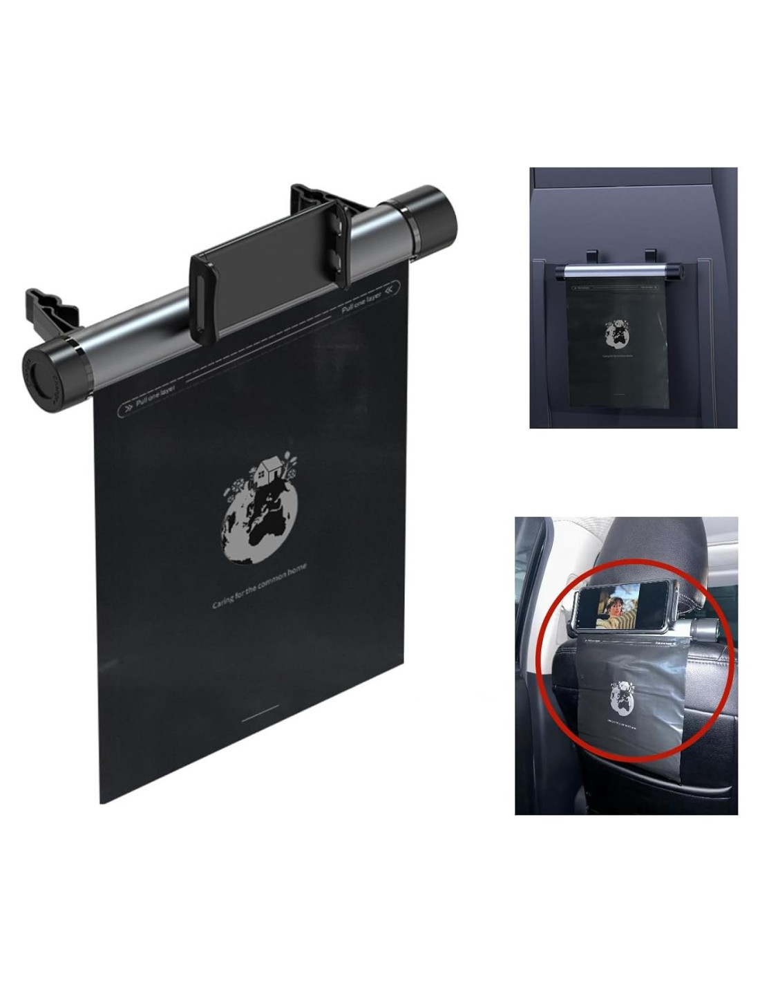 - Diseño innovador, nueva experiencia - el basurero rodante multifuncional utiliza una combinación de bolsas de basura y rodillos, y está equipado con un soporte para teléfono móvil, para que puedas ver películas en el auto mientras disfrutas de la comida con las manos libres, y puedes eliminar la basura generada.
