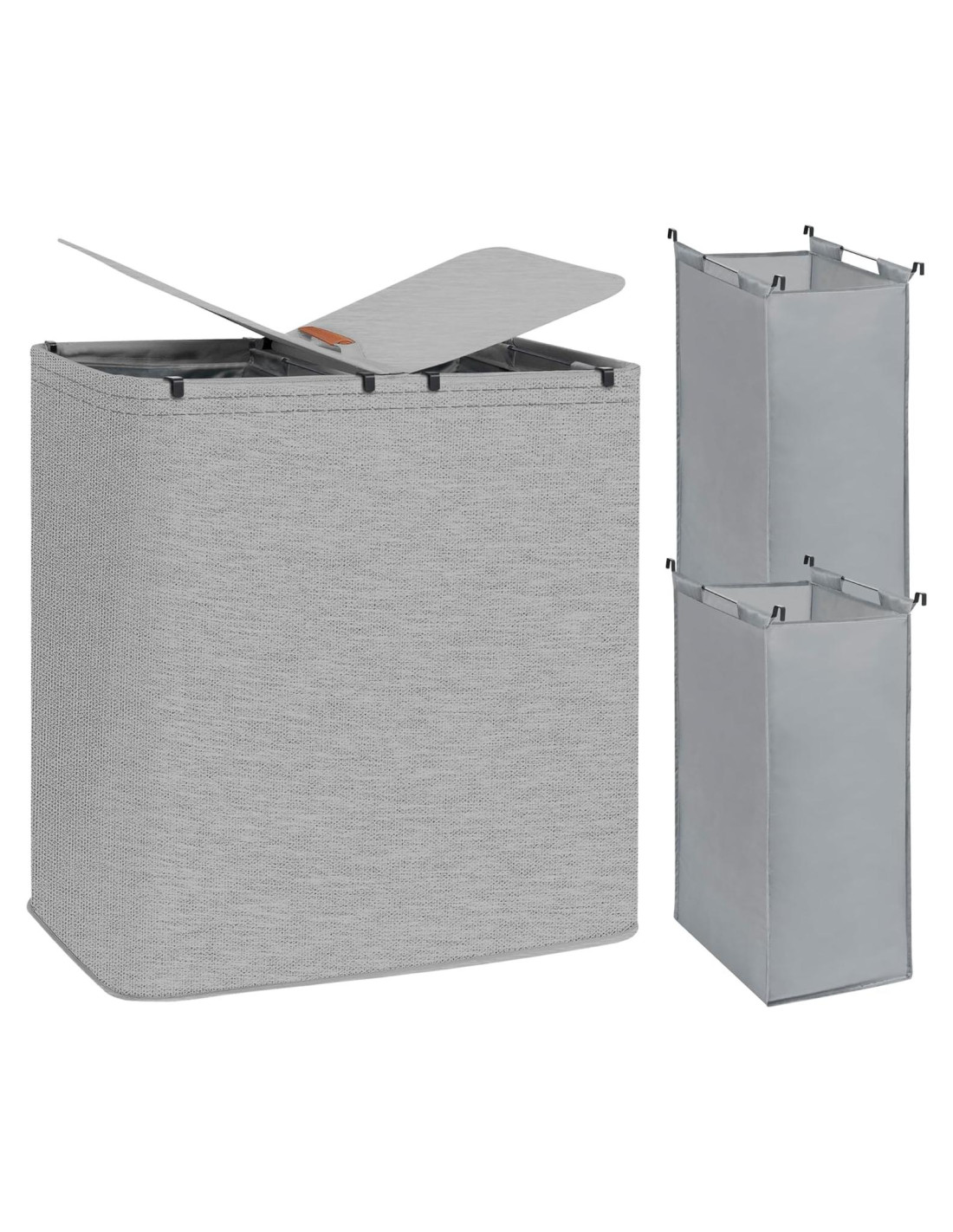 - Gran capacidad para uso familiar: Cesta de ropa grande con tapa de diseño espacioso que mide 60 cm x 35 cm x 65 cm, ofreciendo una capacidad total de 136L (35.9 galones). Cesta de ropa de 2 secciones perfectamente dimensionada para contener la ropa de una semana para una familia de tres.
