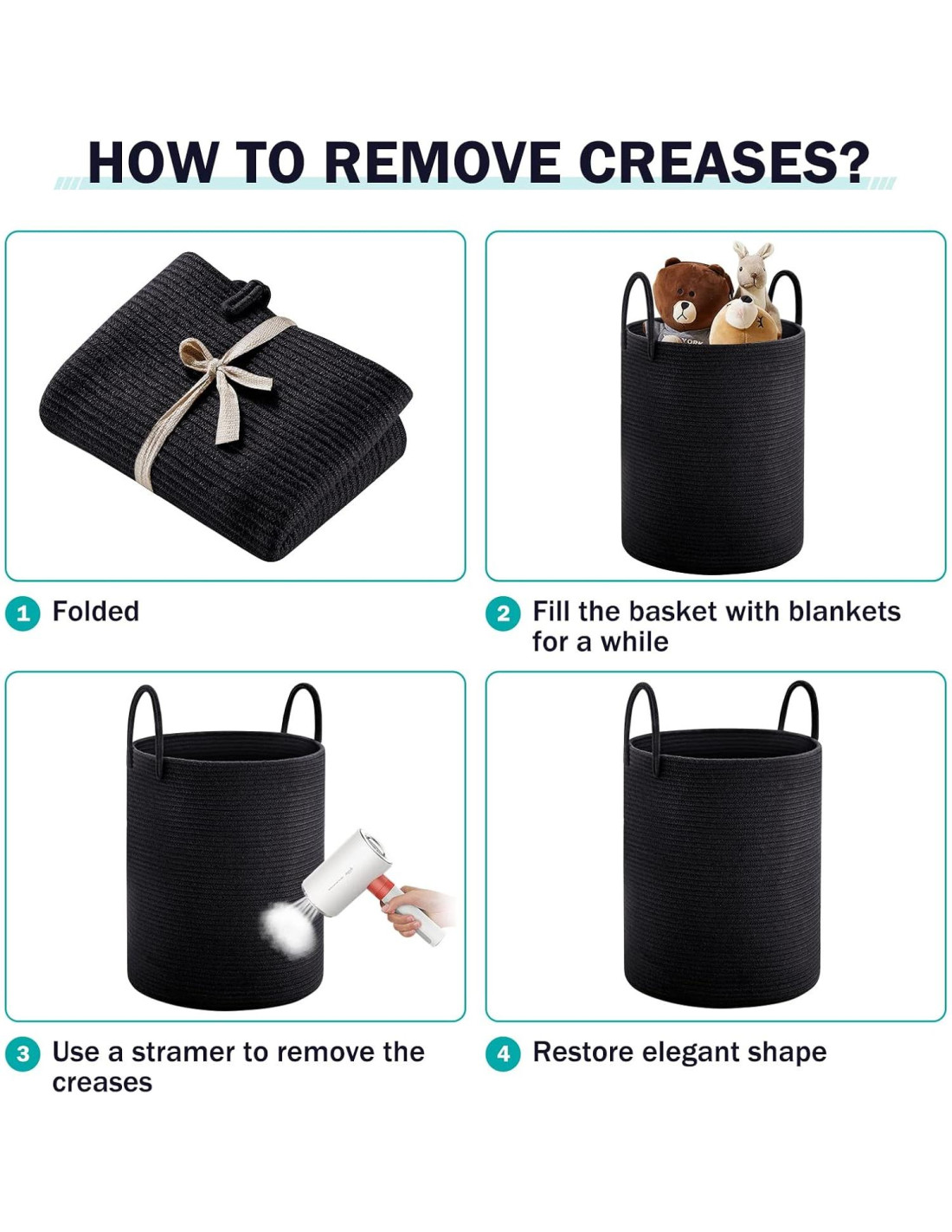 - [Cestas de almacenamiento multipropósito] La cesta de 72L de capacidad puede mantener las cosas organizadas de manera elegante y decorativa. Puedes usarlas para almacenar toallas adicionales, mantas, ropa, juguetes para bebés y perros, libros, almohadas o cualquier otro artículo del hogar que tengas en casa, cualquier cosa que puedas imaginar.