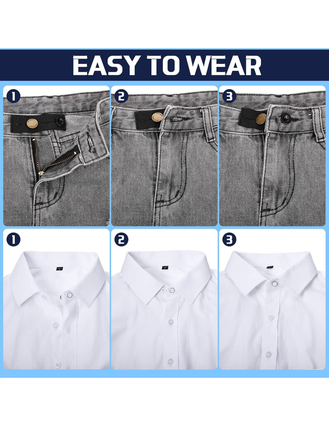 - Estable para Uso Prolongado: el extensor de cuello de camisa está hecho de metal de calidad, fácil de estirar como desees, brindándote una experiencia de uso cómoda; Y el extensor de pantalones está hecho de banda elástica de calidad, con buena elasticidad, haciendo que tus pantalones sean más adecuados y cómodos