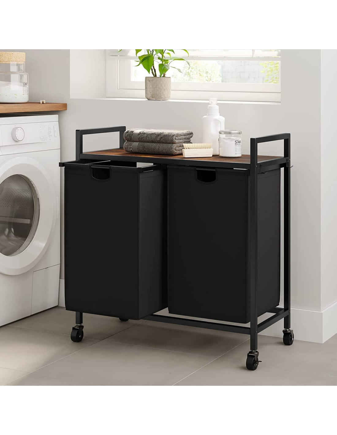 - Aspecto Maravilloso: El organizador de ropa está meticulosamente elaborado a partir de un estante superior y material metálico. El cesto te proporciona dos bolsillos de tela Oxford para ayudarte a clasificar colores, y un estante superior para aumentar el espacio de almacenamiento. El diseño delicado es adecuado para cualquier estilo de diseño de hogar y funcionará perfectamente en tu dormitorio, baño o lavandería.
