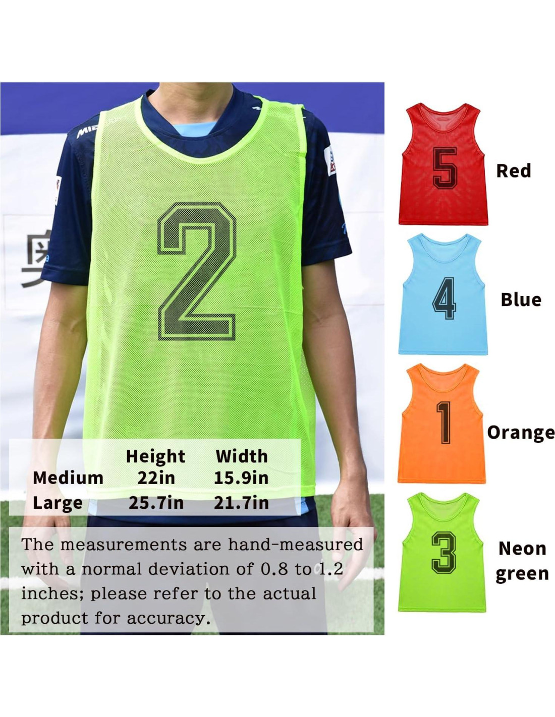 - Conjunto: Los chalecos de práctica vienen en cuatro colores: rojo, azul, naranja y verde, con cada conjunto conteniendo 12 piezas. Los chalecos de práctica presentan números del 1 al 12 impresos en la parte delantera y trasera, con números negros diseñados con líneas claras que no se desvanecen. La combinación de colores vibrantes permite a los jugadores distinguir fácilmente los equipos, satisfaciendo las necesidades de uso diario y entrenamiento para equipos.