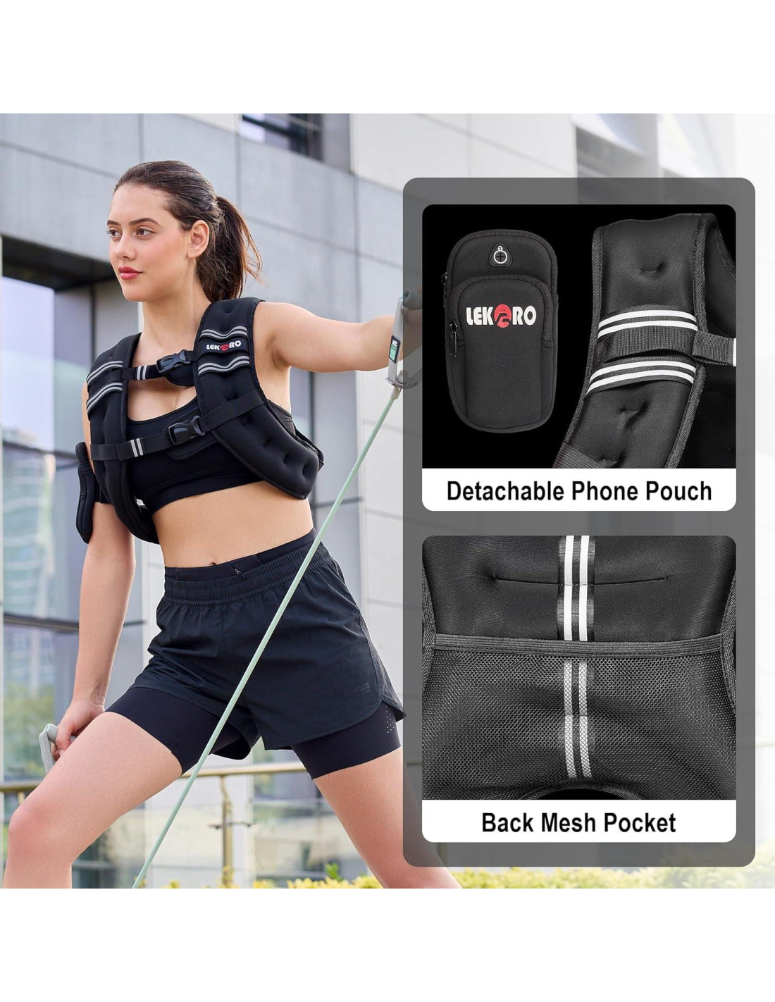 - UNIVERSAL PARA MUJERES Y HOMBRES: Chaleco con peso con hebilla ajustable y cinturilla elástica con franja reflectante para asegurar que no se desplace durante el ejercicio. Adecuado para todas las formas y tamaños.