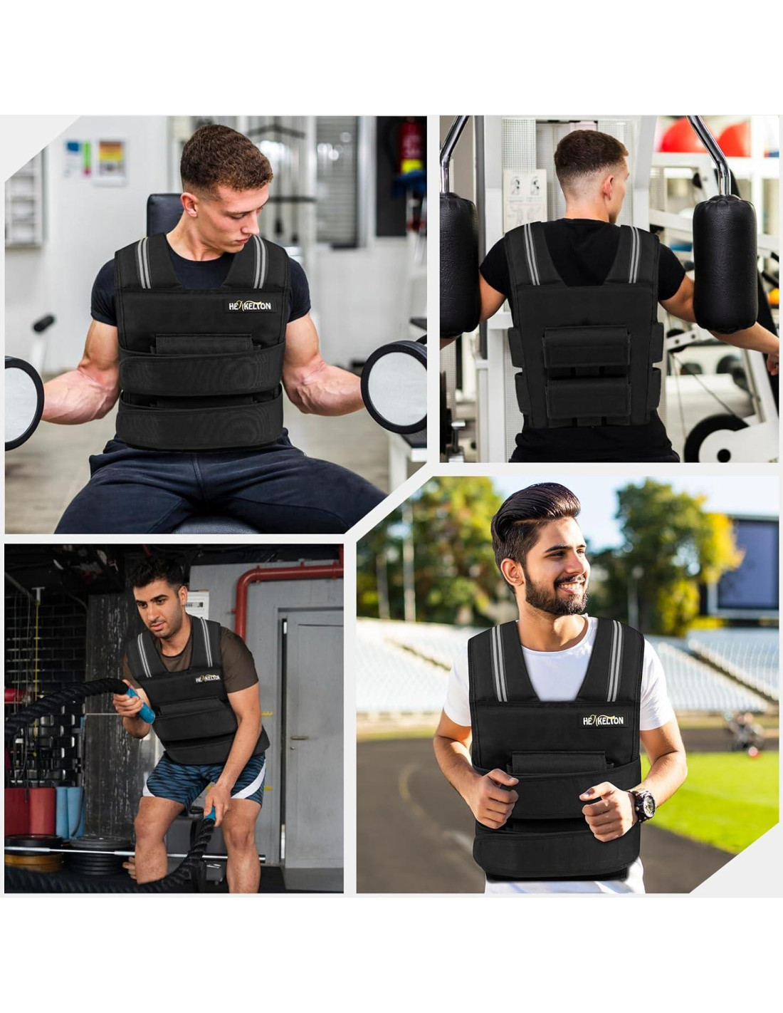 - ÚTIL Y SEGURO - Si estás usando el chaleco de entrenamiento con peso al aire libre o participando en ejercicios con poca luz, incluso mientras estás fuera y sobre, te mantendrás seguro y fácil de ver gracias a las cintas reflectantes de alta visibilidad en los hombros y la espalda del chaleco con peso ajustable