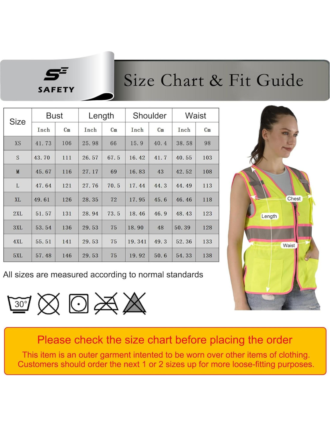 Chaleco de Seguridad de Alta Visibilidad para Mujeres, Chaleco de Construcción con Cintura Ajustable y Cremallera
