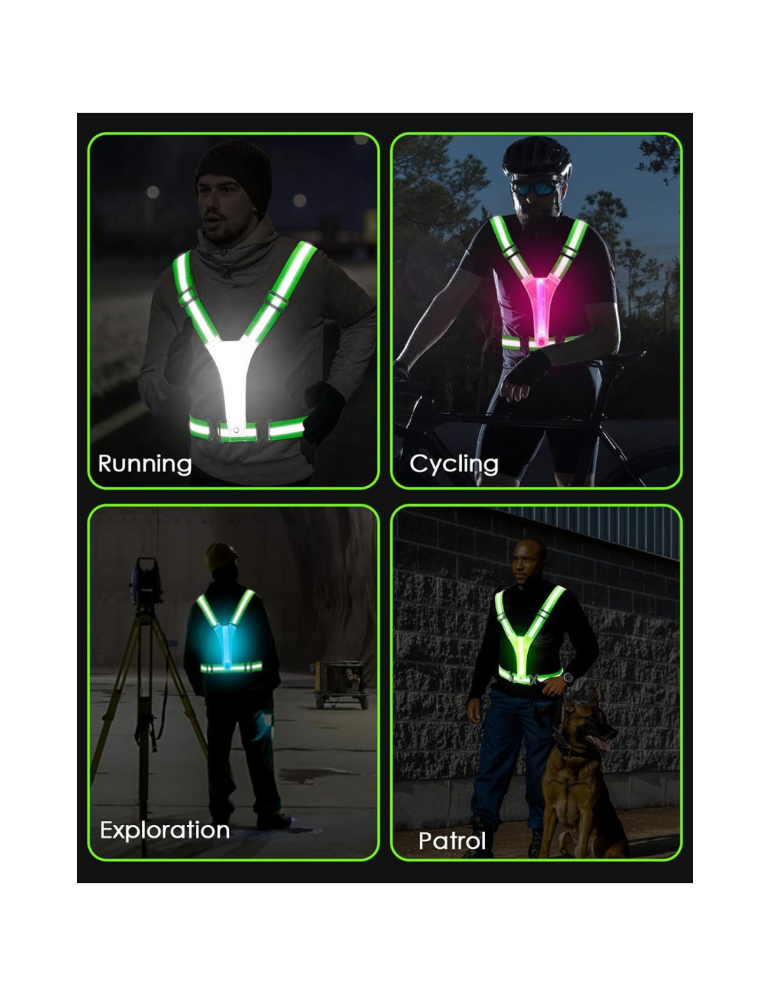 - [Mantente Seguro, Mantente Visible con Alta Visibilidad] : Este chaleco reflectante LED utiliza luces LED de primera calidad y tiras reflectantes, iluminación de 360 por la noche para garantizar tu seguridad, incluso en un entorno hostil a 1000 pies (304.8 metros) de distancia. Y te mantiene visible y seguro durante actividades al aire libre con poca luz con el chaleco reflectante para correr.