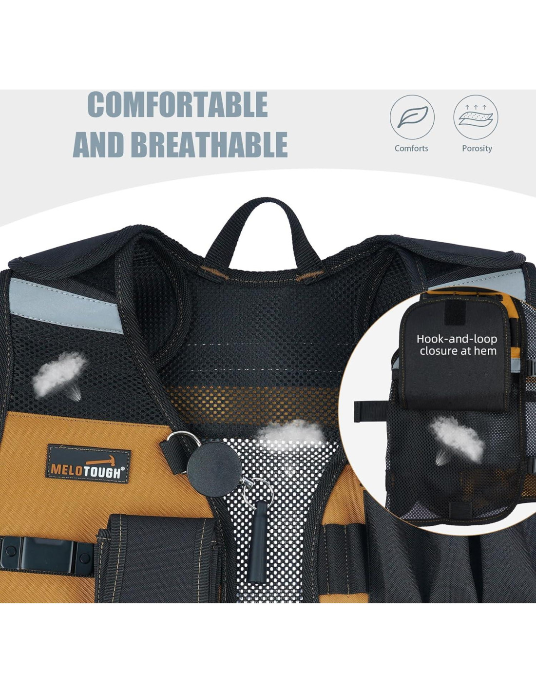 - CÓMODO Y TRANSPIRABLE: El material de malla hace que el chaleco de herramientas sea transpirable y ayuda a mantenerte seco y cómodo a través de la circulación de aire.