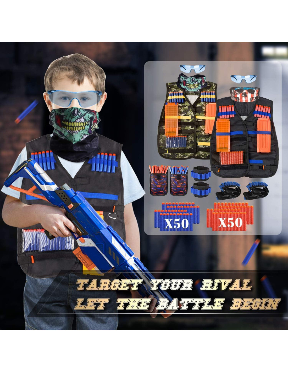 - Equipo Esencial: El kit de chaleco para niños es adecuado para armas Nerf, te proporcionaremos una preparación completa para cualquier juego de batalla. Incluye 2* Chalecos Tácticos, 100* Dardos, 2* Clips de Recarga Rápida, 2* Bandas de Muñeca, 2* Máscaras Tácticas, 2* Binoculares para niños, 2* Gafas Protectores, 2* Bolsas de Dardos y 2* Cinturones de Dardos.