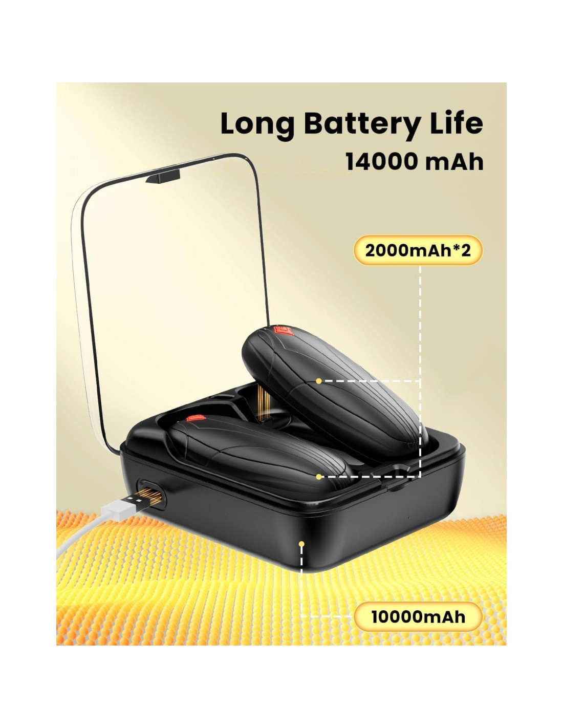 - 3 Niveles de Calor, 6-40 horas de Tiempo de Trabajo: Experimenta la máxima comodidad con este calentador de manos recargable magnético, que cuenta con una robusta funda de carga de 10000mAh emparejada con 2 calentadores de manos usb de 2000mAh. Tan pronto como coloques estos calentadores de manos reutilizables dentro, comienzan a cargarse automáticamente, proporcionándote una fuente confiable de calor para el largo invierno.