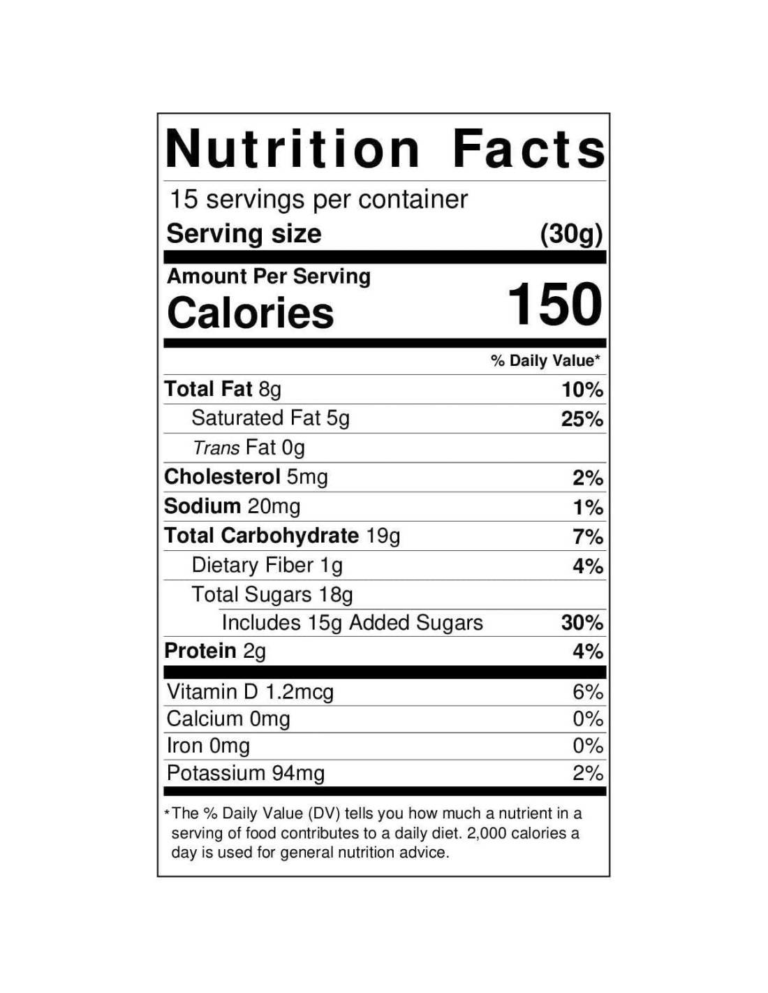 - : Azúcar, Manteca de Cacao, Leche en Polvo Entera, Masa de Cacao, Lactosa, Lecitina de Soja (Como Emulsificante) Sabor Natural a Vainilla. Fabricado en una instalación libre de nueces, No OGM, Kosher.