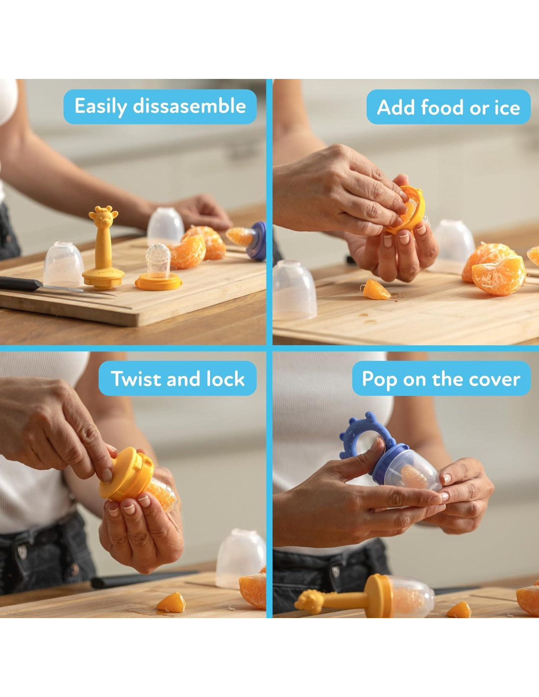 - MANGOS DE PERSONAJES LINDOS: Los mangos del Alimentador de Silicona son fáciles de sostener para manos pequeñas, y los adorables personajes animales hacen que morder sea divertido; Apto para lavavajillas (solo en la parte superior) para una fácil limpieza