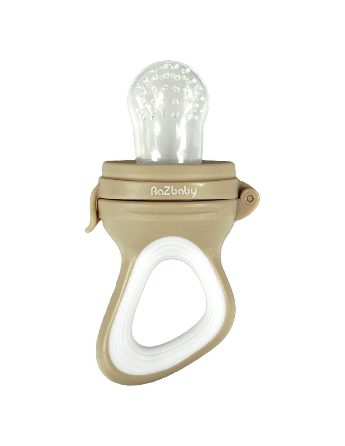 RaZbaby es una empresa con sede en Miami que patenta, desarrolla y distribuye productos para bebés únicos y seguros inspirados en la naturaleza. La empresa fue fundada en 2002 por las hermanas Aida y Lidia. Hace más de 20 años, las hermanas salieron a almorzar y concluyeron con un dulce postre de frambuesa. Esto dio origen al nombre de la empresa y al primer producto, el Mordedor RaZberry. El diseño único del RaZfeeder permite que solo las piezas más pequeñas de comida pasen para prevenir el atragantamiento. Su bolsa está hecha de silicona de grado alimenticio 100% que es apta para lavavajillas, libre de BPA, libre de látex, libre de ftalatos y libre de plomo. El anillo de cierre rápido permite un fácil ensamblaje y limpieza del alimentador. Su gran mango facilita que las manos pequeñas lo sostengan y comiencen a aprender a alimentarse. El RaZfeeder se puede llenar con frutas congeladas para el máximo alivio natural de la dentición de su bebé. Ayuda a introducir sólidos o frutas congeladas de manera segura, para un tiempo de merienda rápido y fácil. Simplemente coloque la comida en la tetina y cierre el cierre rápido. ¡Intente agregar frambuesas congeladas, plátanos, fresas, naranjas, piñas, uvas, etc. para que su bebé disfrute!